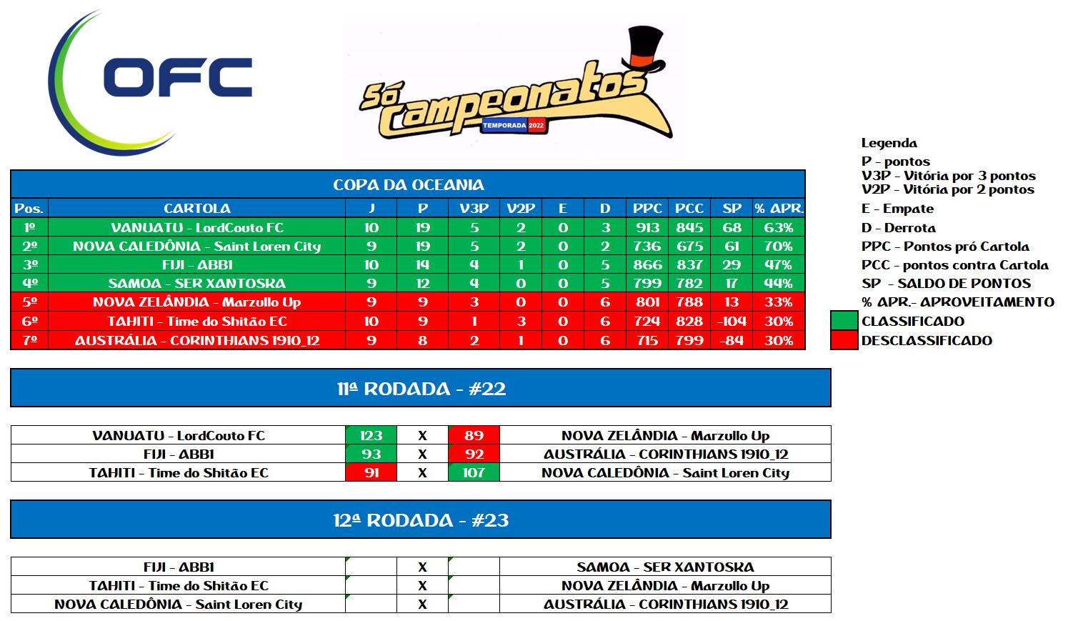 COPA DA OCEANIA – RODADA 11