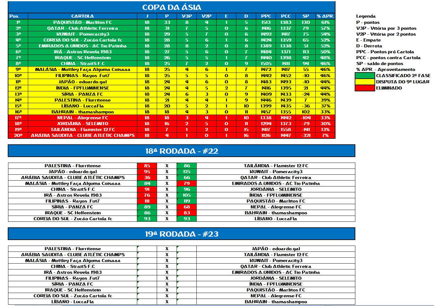 COPA DA ÁSIA – RODADA 18