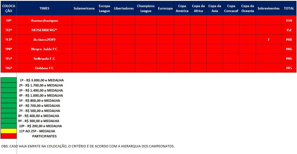 CLASSIFICAÇÃO – O MAIOR CAMPEONATOS DA HISTÓRIA