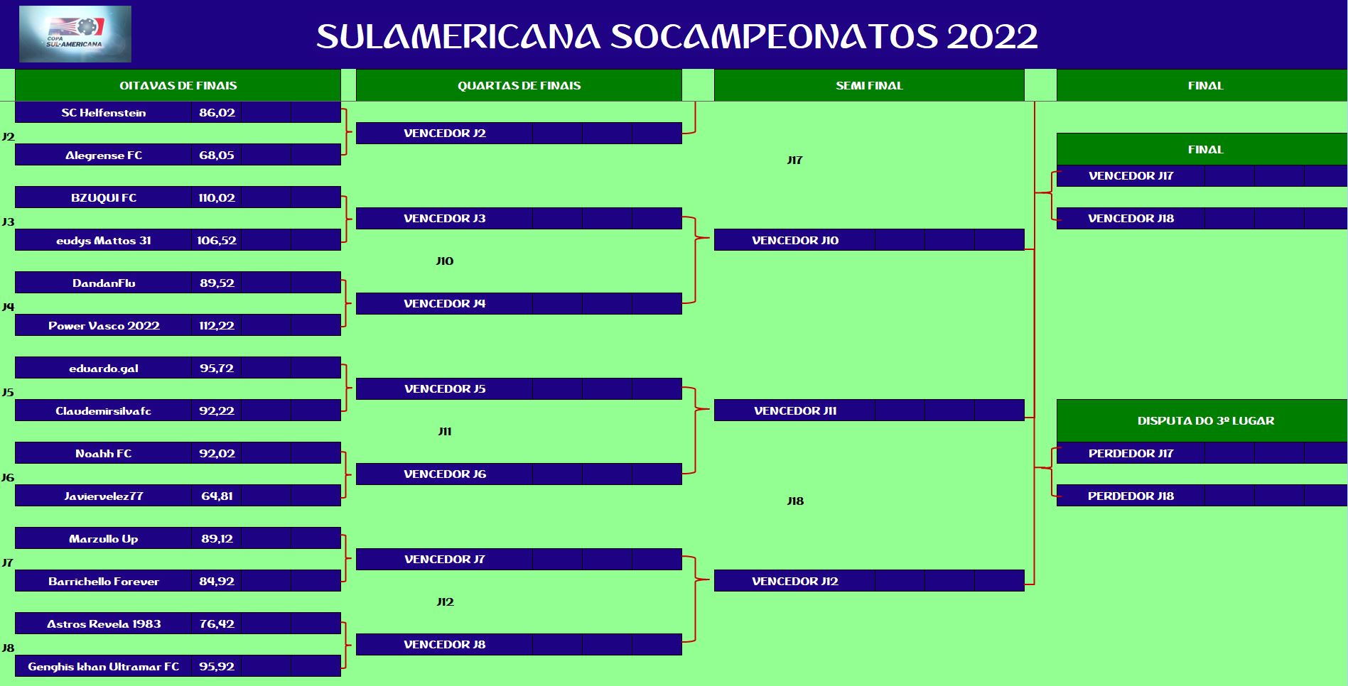 CHAMPIONS LEAGUE SOCAMPEONATOS TABELA