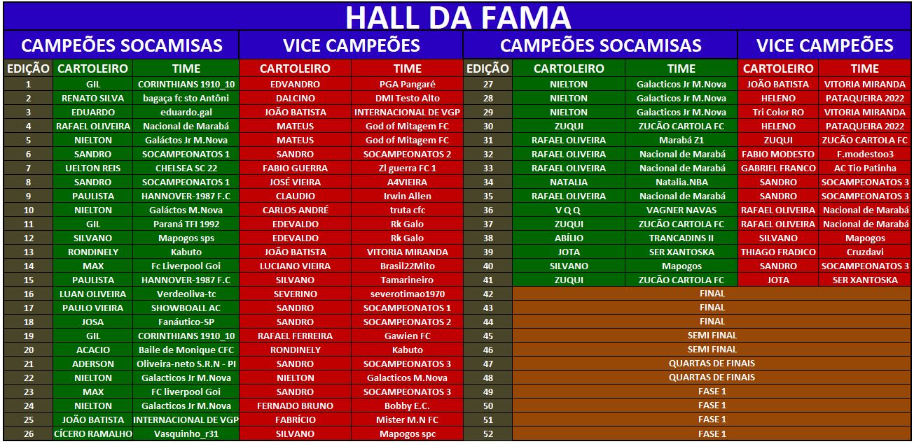 CAMPEÃO PONTOS CORRIDOS SOCAMPEONATOS