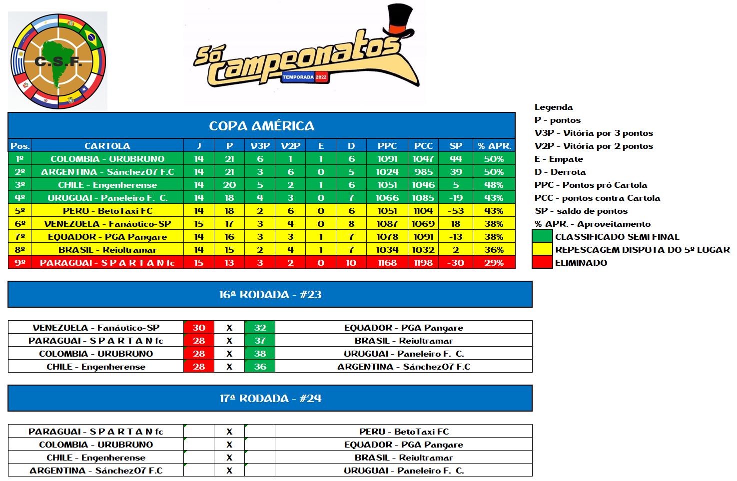 CLASSIFICAÇÃO COPA DO URUGUAI