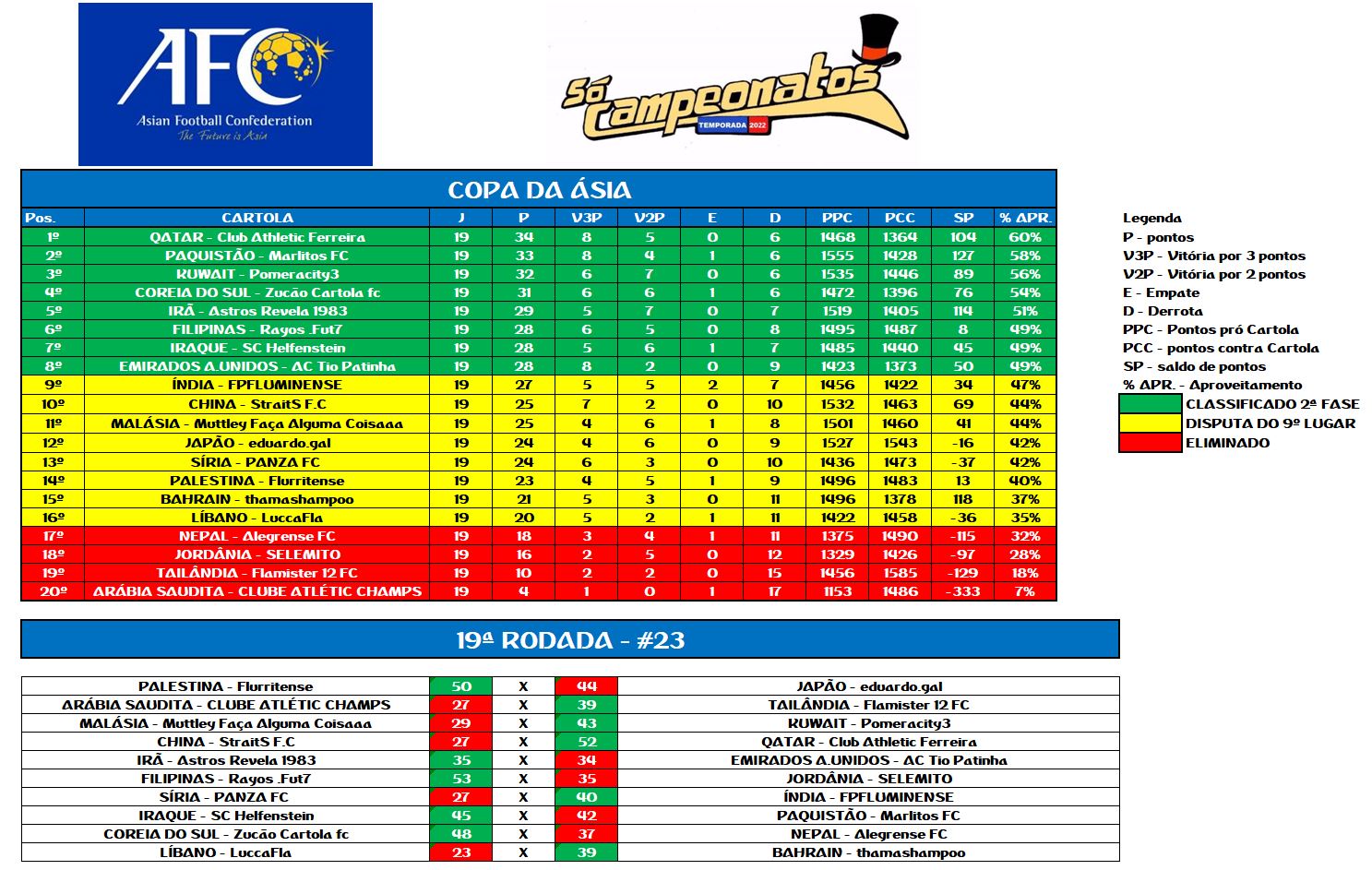 COPA DA ÁSIA – ÚLTIMA RODADA