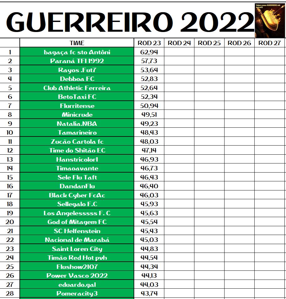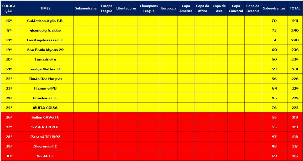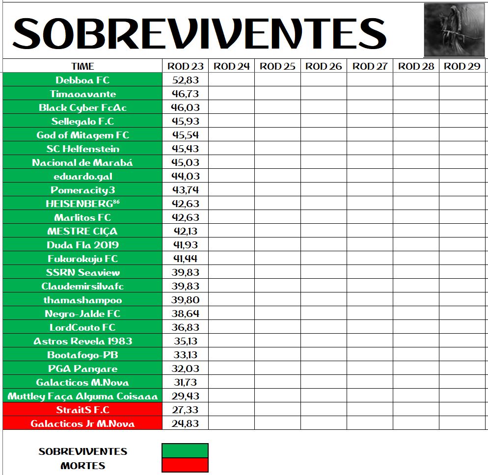 SOBREVIVENTES DA TEMPORADA – RODADA 23