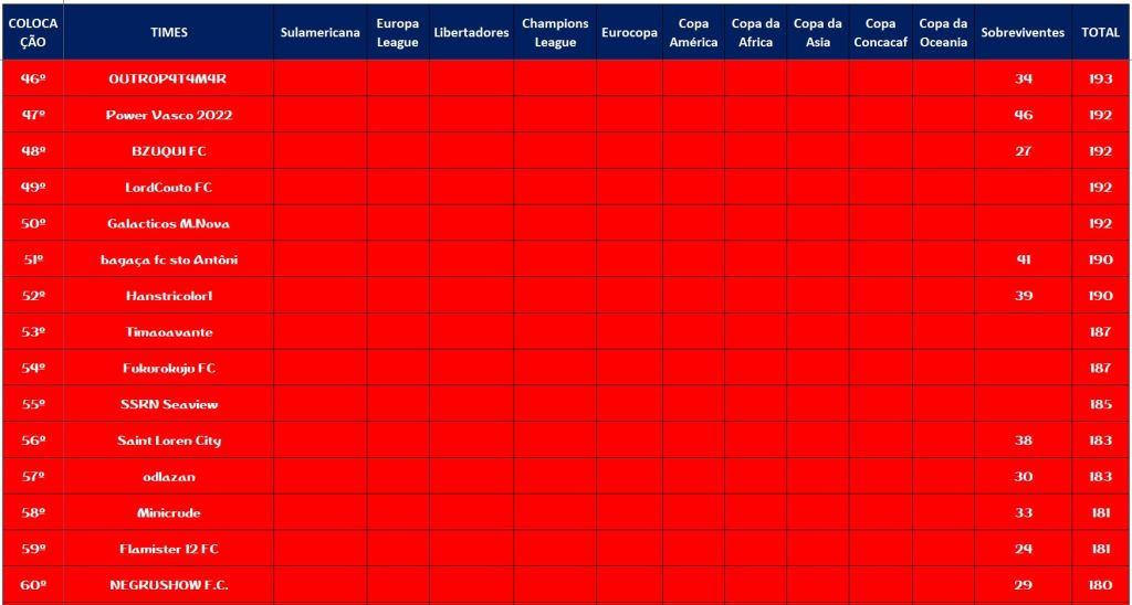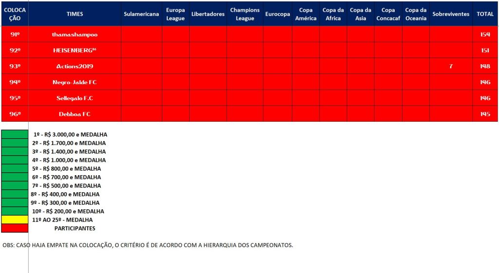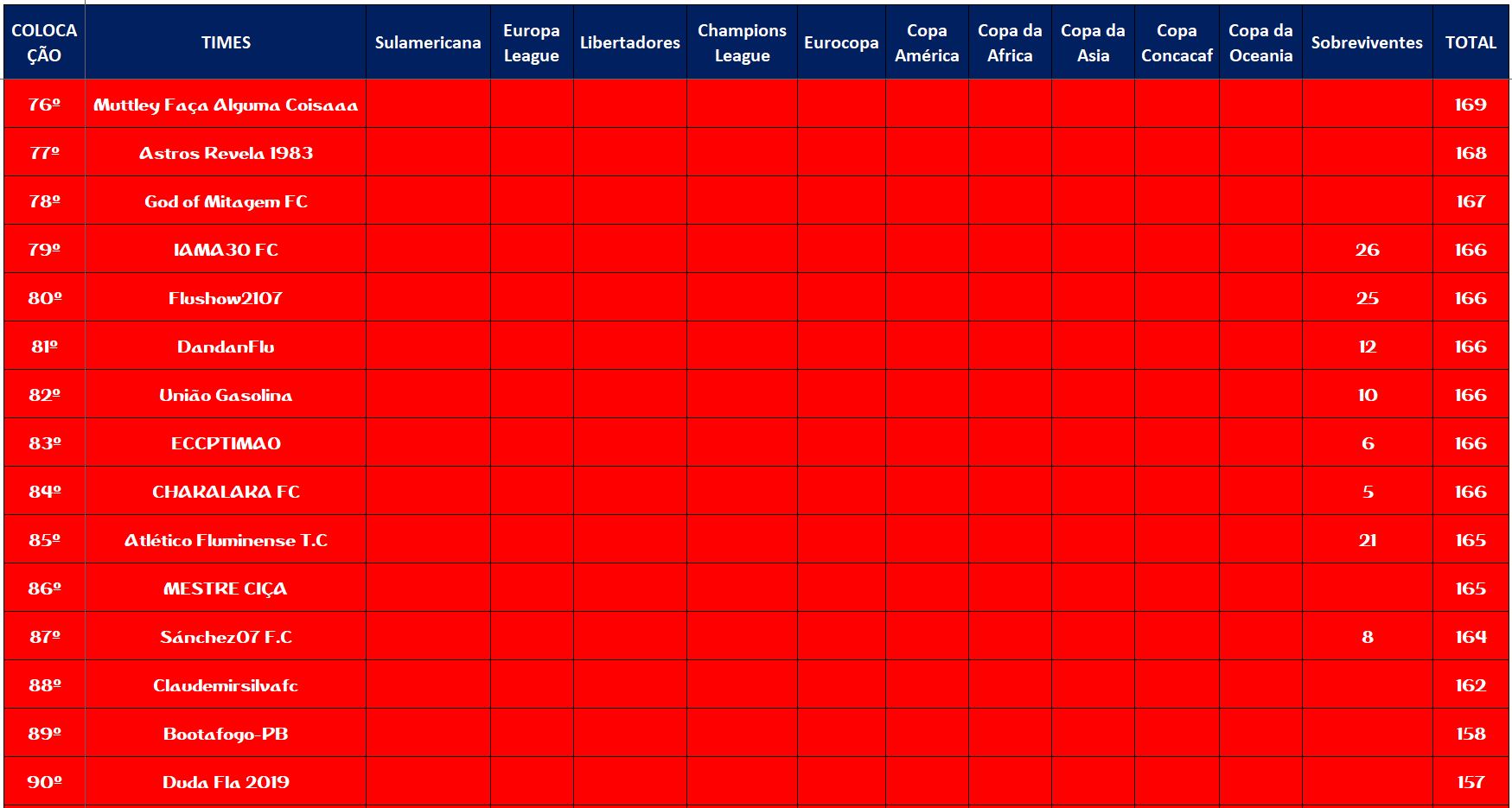 CLASSIFICAÇÃO – O MAIOR CAMPEONATOS DA HISTÓRIA