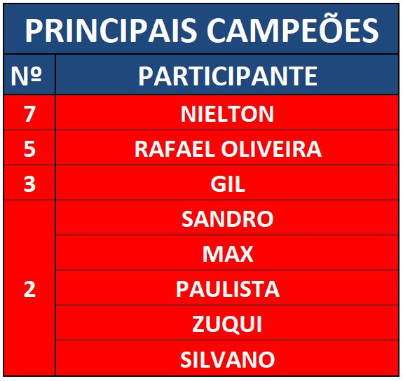 CAMPEÃO DISPUTAS DOS CAMPEONATOS