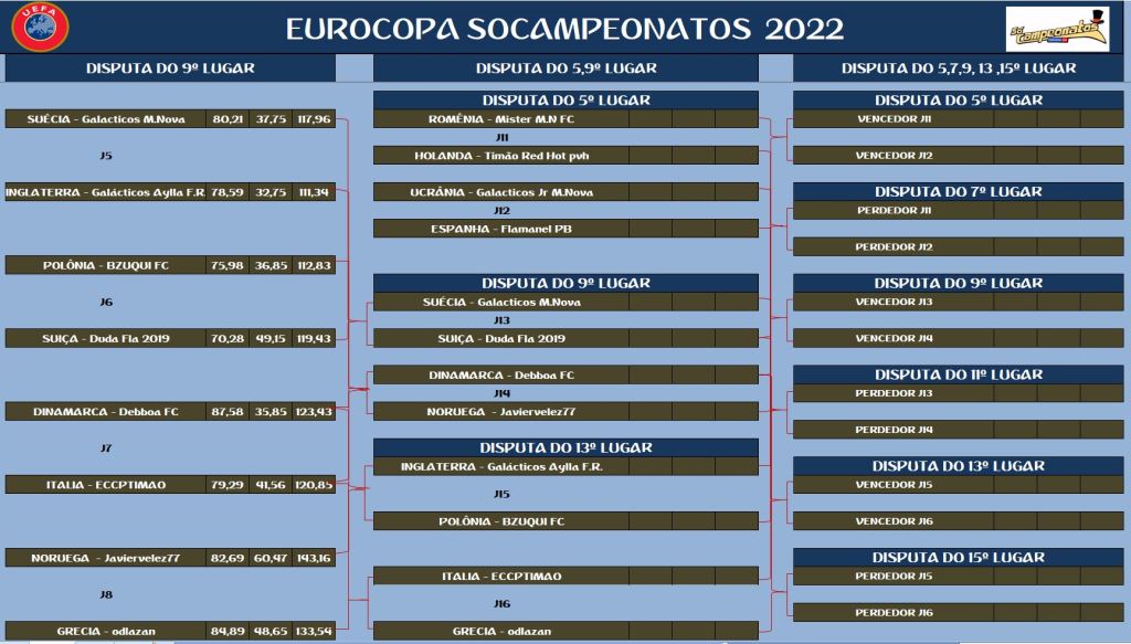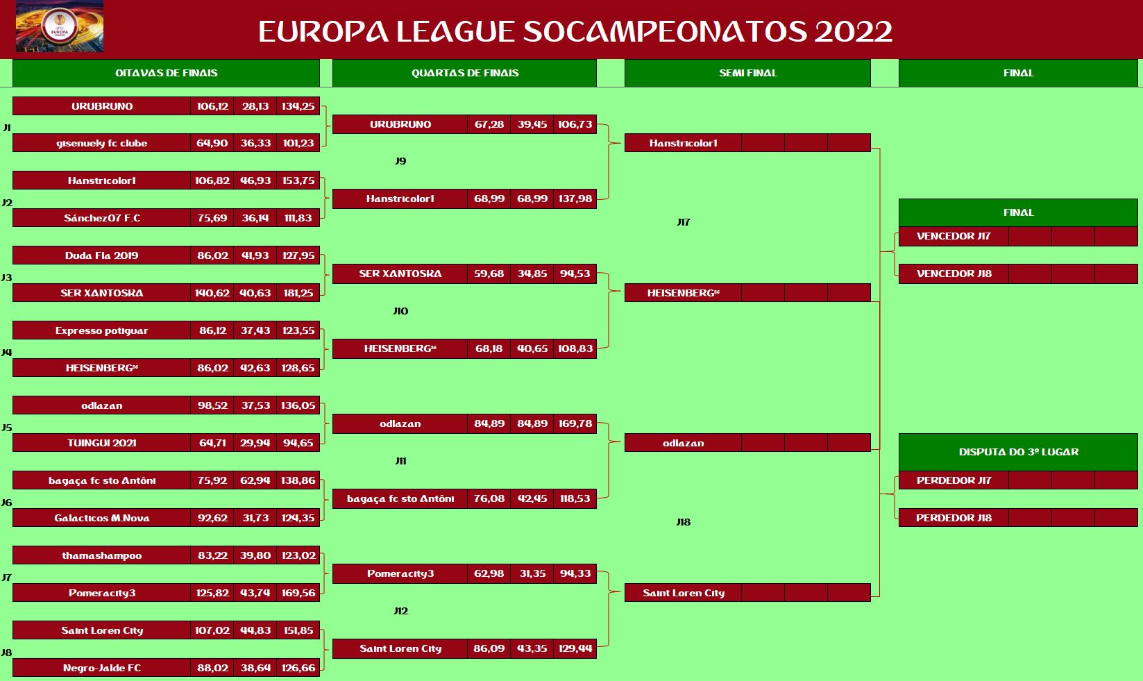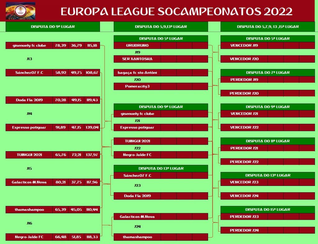 EUROPA LEAGUE – QUARTAS DE FINAIS e DISPUTA DO 9º LUGAR – VOLTA Publicado em 06/09/2022 por socampeonatos