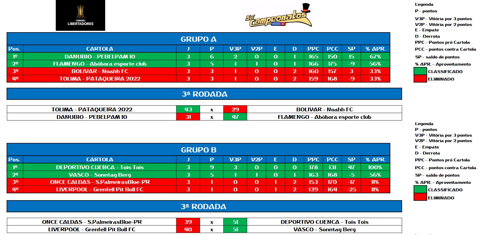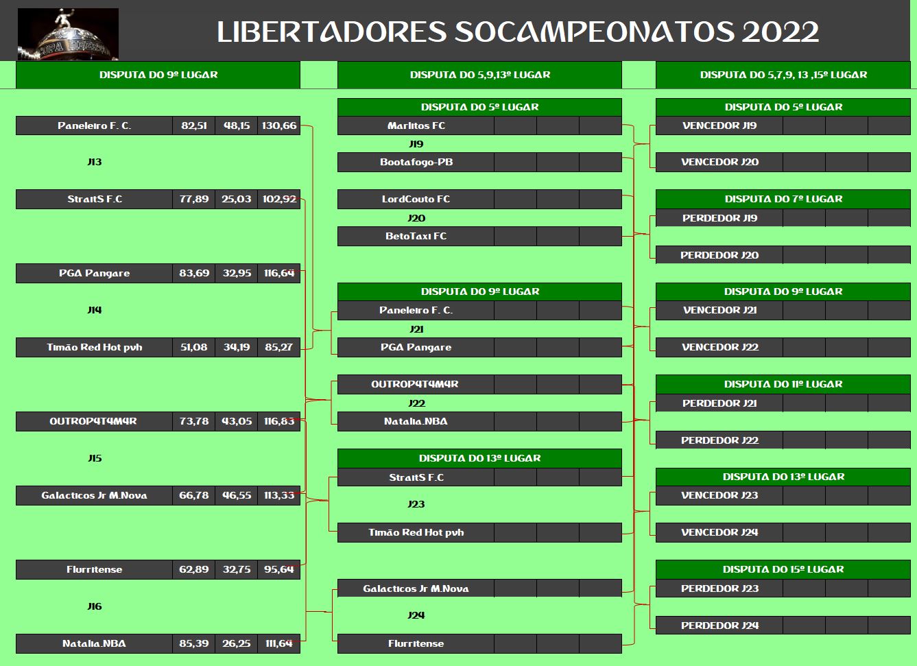 LIBERTADORES – QUARTAS DE FINAIS e DISPUTA DO 9º LUGAR – VOLTA Publicado em 06/09/2022 por socampeonatos