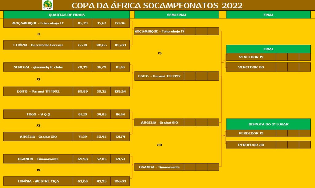 COPA DA ÁFRICA – QUARTAS DE FINAIS e DISPUTA DO 9º LUGAR – VOLTA Publicado em 06/09/2022 por socampeonatos