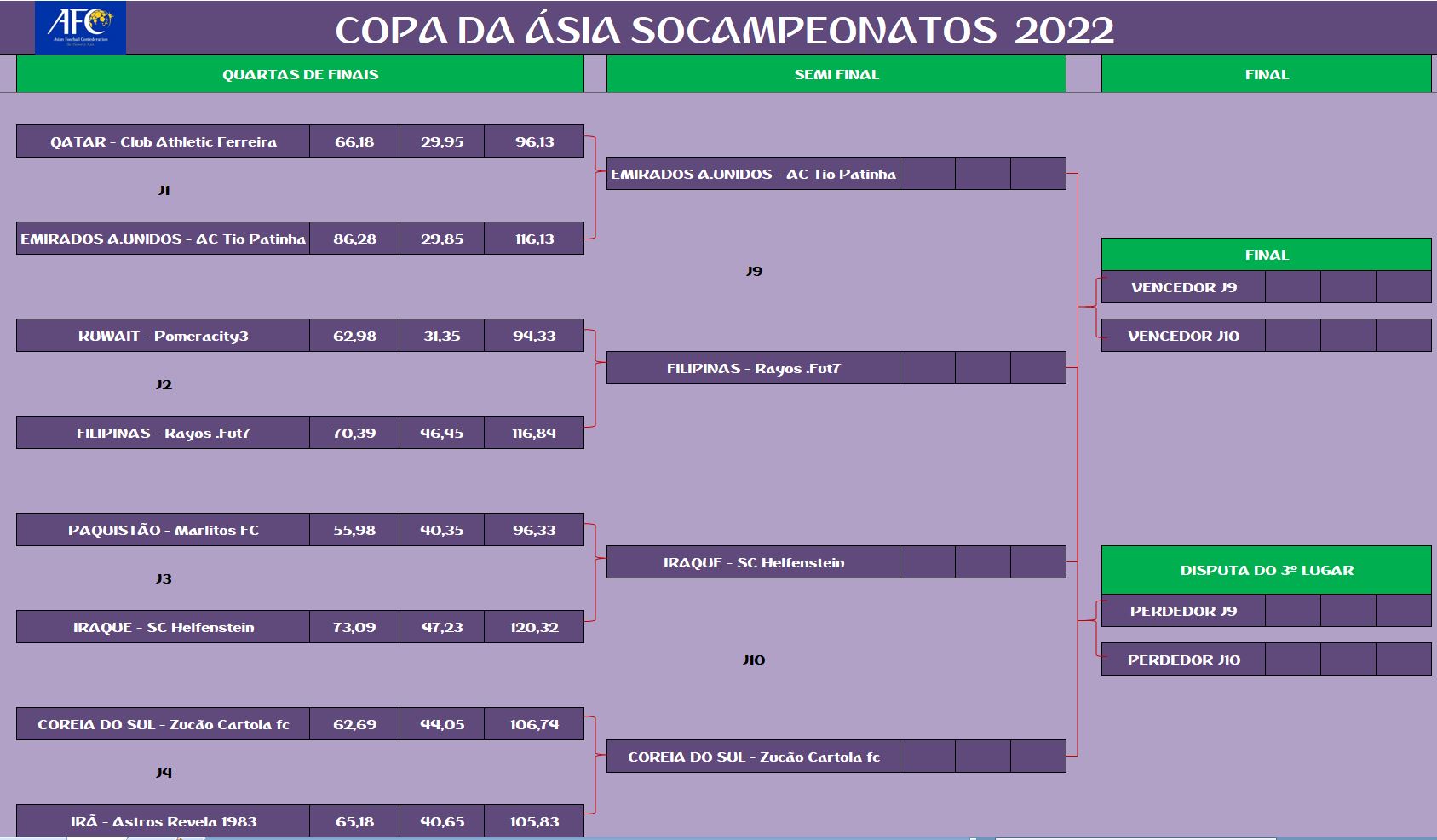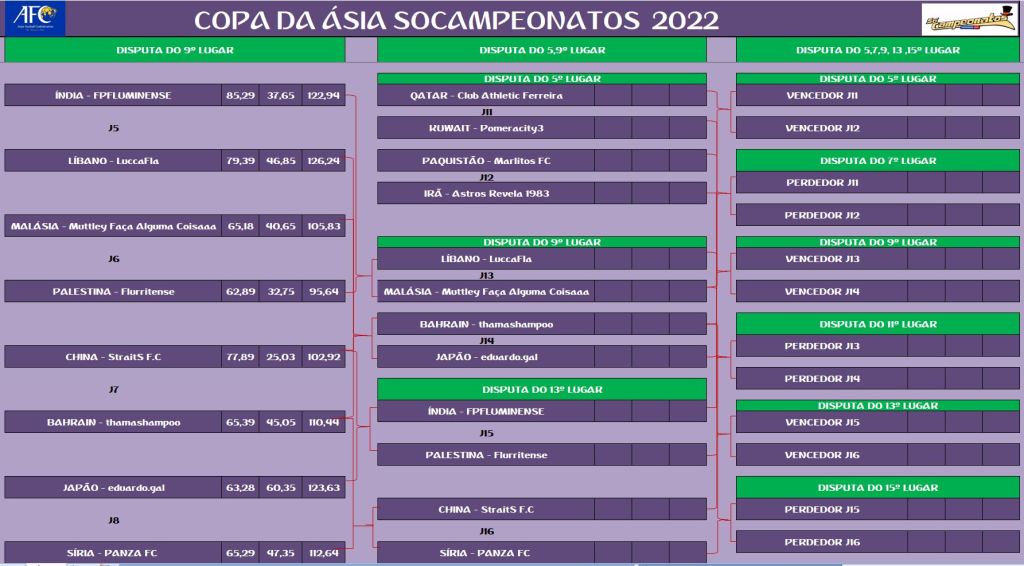COPA DA ÁSIA – QUARTAS DE FINAIS e DISPUTA DO 9º LUGAR – VOLTA Publicado em 06/09/2022 por socampeonatos