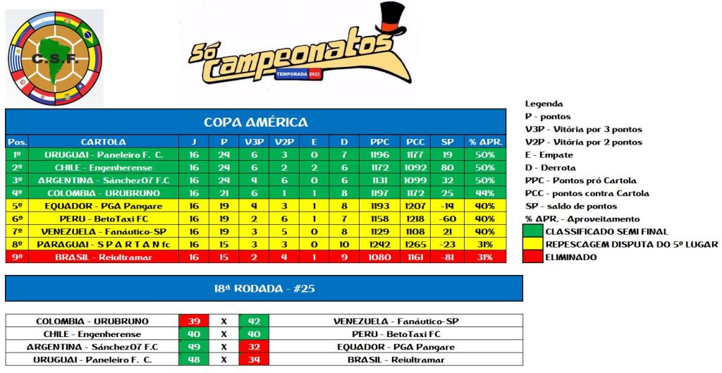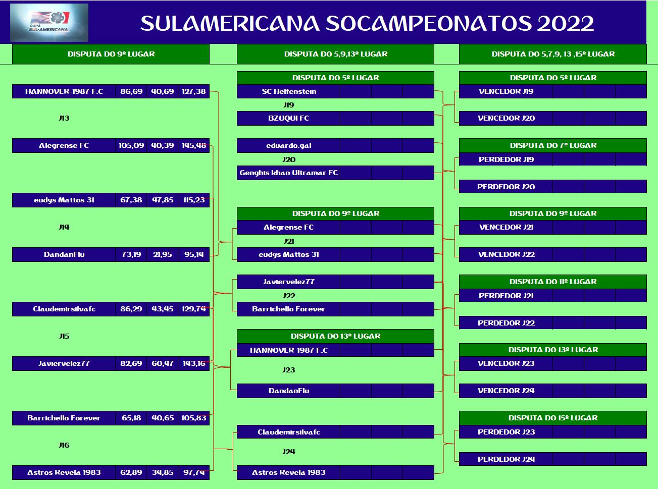 SULAMERICANA – QUARTAS DE FINAIS e DISPUTA DO 9º LUGAR – VOLTA Publicado em 06/09/2022 por socampeonatos