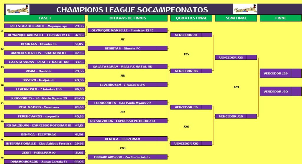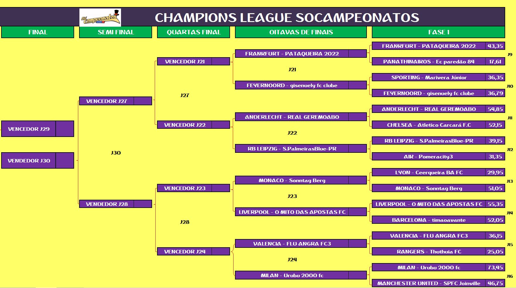 CHAMPIONS LEAGUE – QUARTAS DE FINAIS e DISPUTA DO 9º LUGAR – VOLTA Publicado em 06/09/2022 por socampeonatos