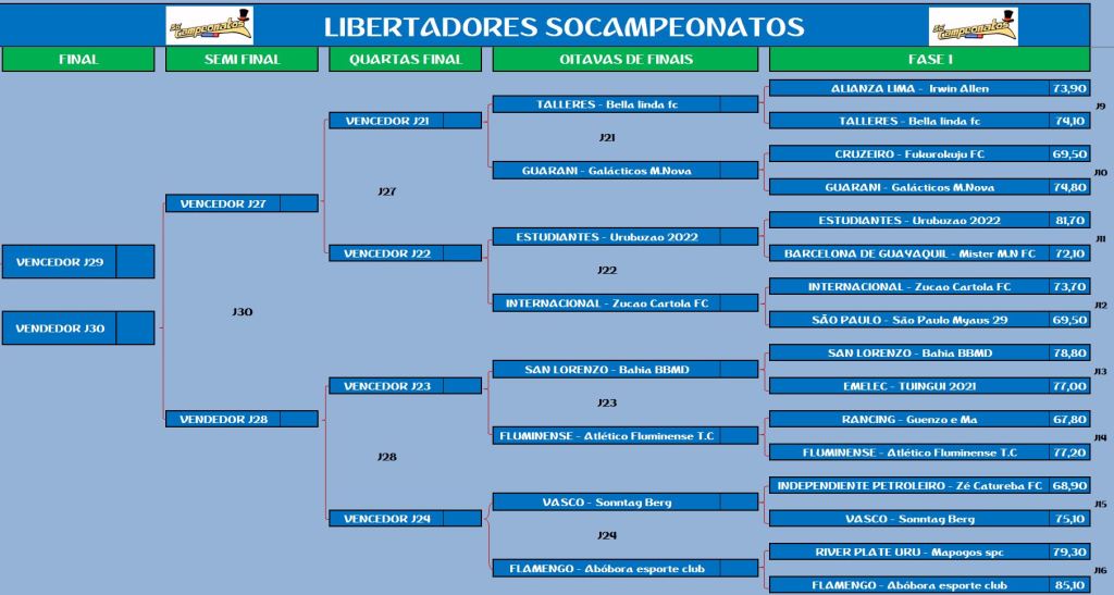 LIBERTADORES SOCAMPEONATOS – MATA MATA – FASE 1 Publicado em 13/09/2022 por socampeonatos Compartilhe isso: Clique para compartilhar no X(abre em nova janela) 18+ Clique para compartilhar no Facebook(abre em nova janela) Facebook Clique para compartilhar no WhatsApp(abre em nova janela) WhatsApp Curtir Carregando... Relacionado