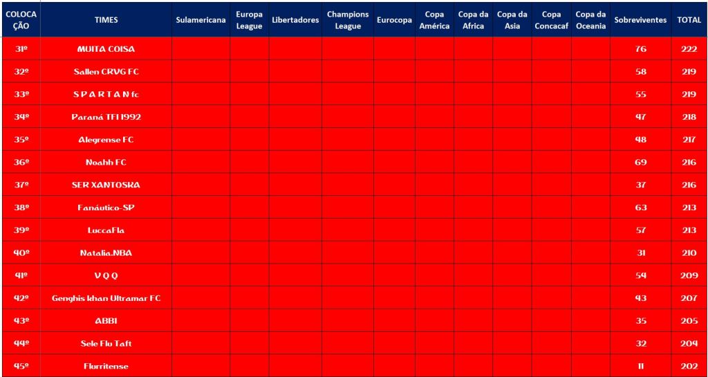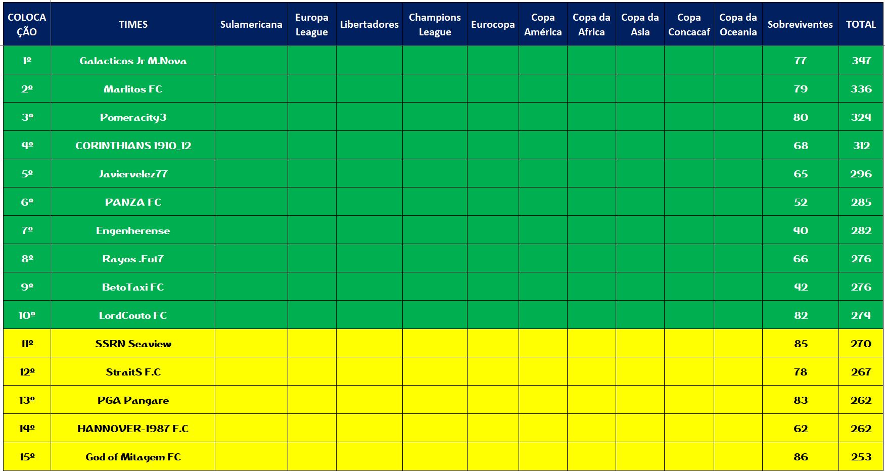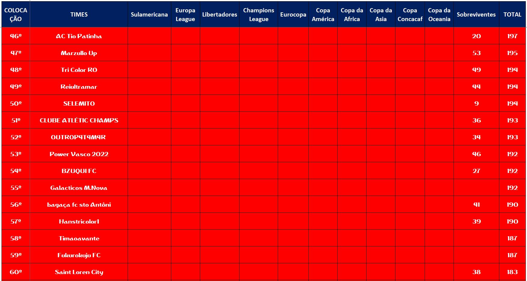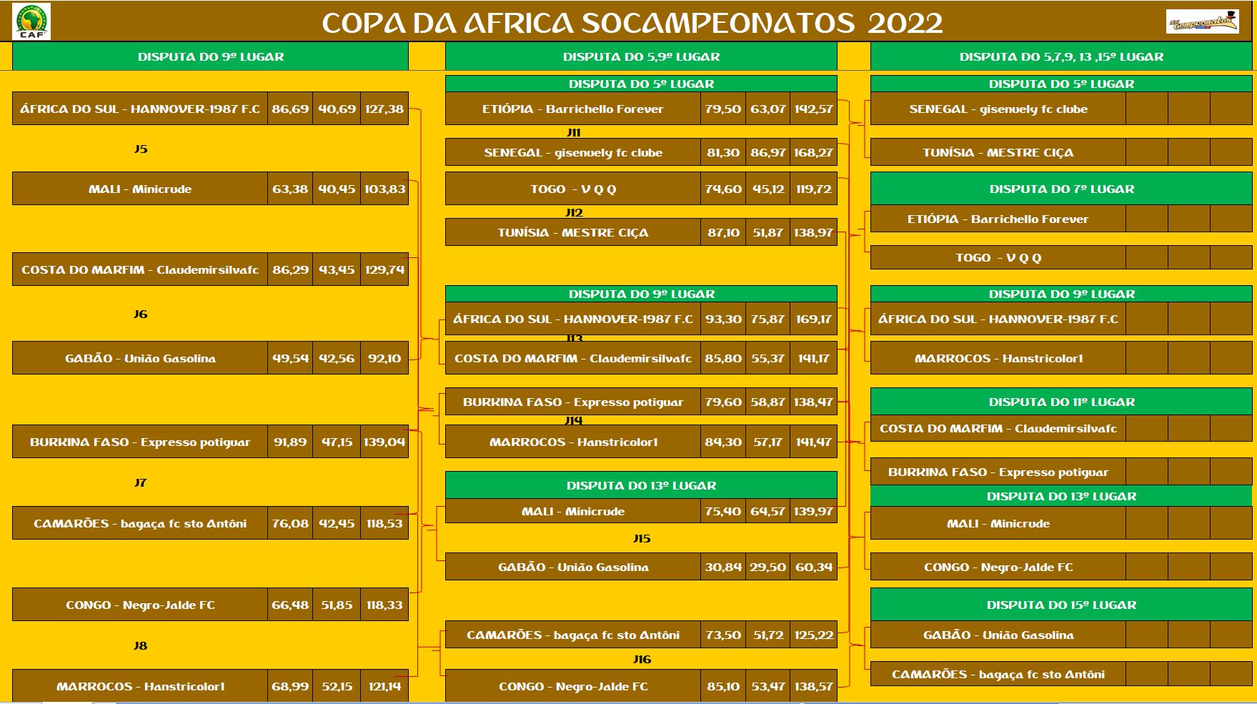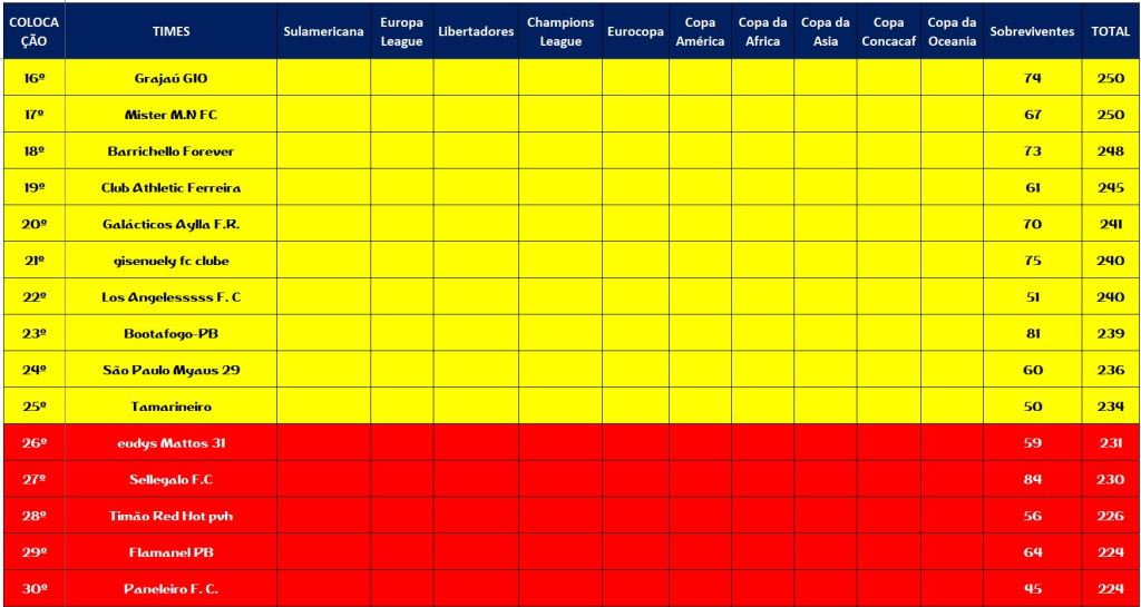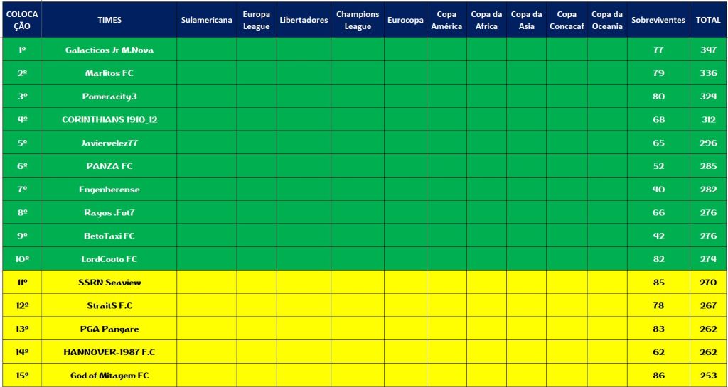 • CLASSIFICAÇÃO DISPUTAS DOS CAMPEONATOS