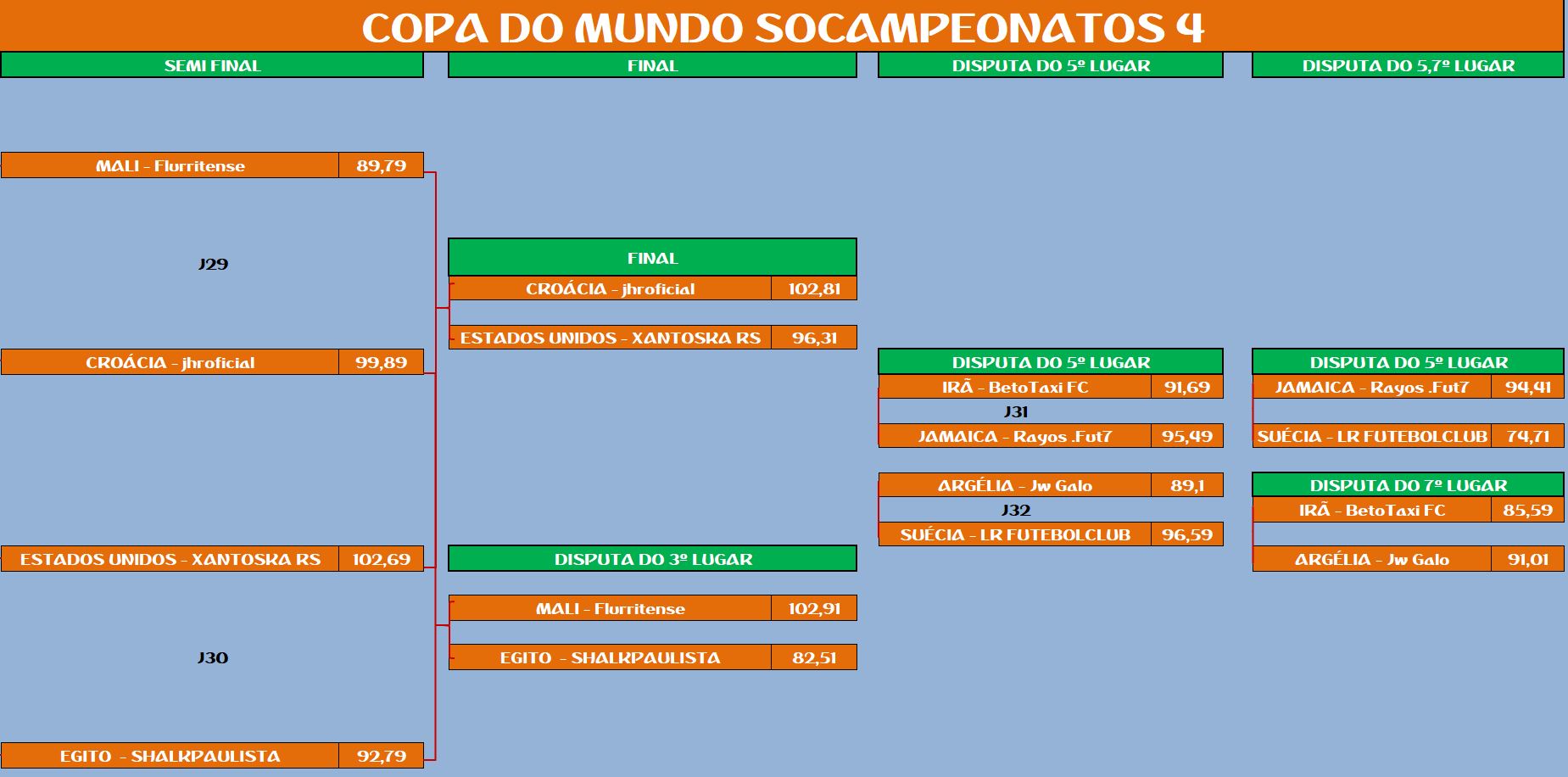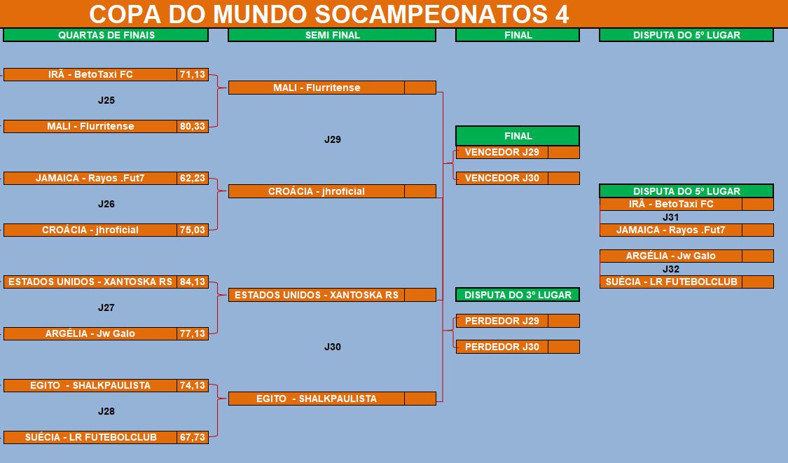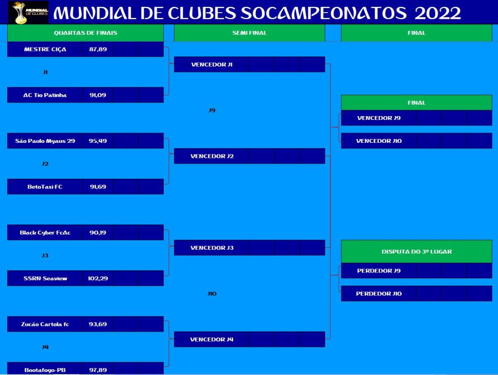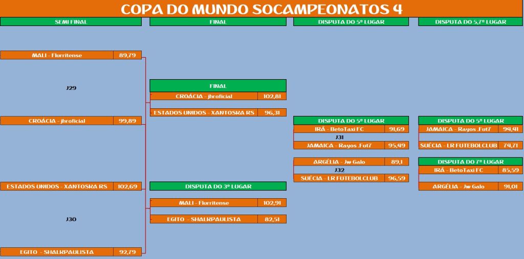 COPA DO MUNDO SOCAMPEONATOS 4 – SEMI FINAL, DISPUTA DO 5º LUGAR Publicado em 25/10/2022 por socampeonatos