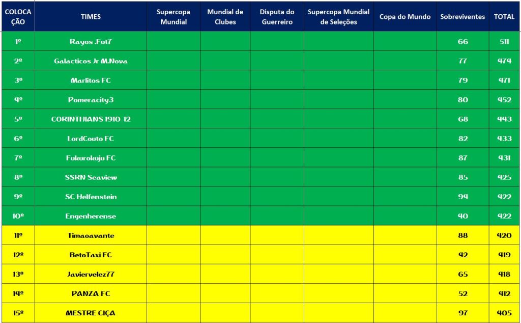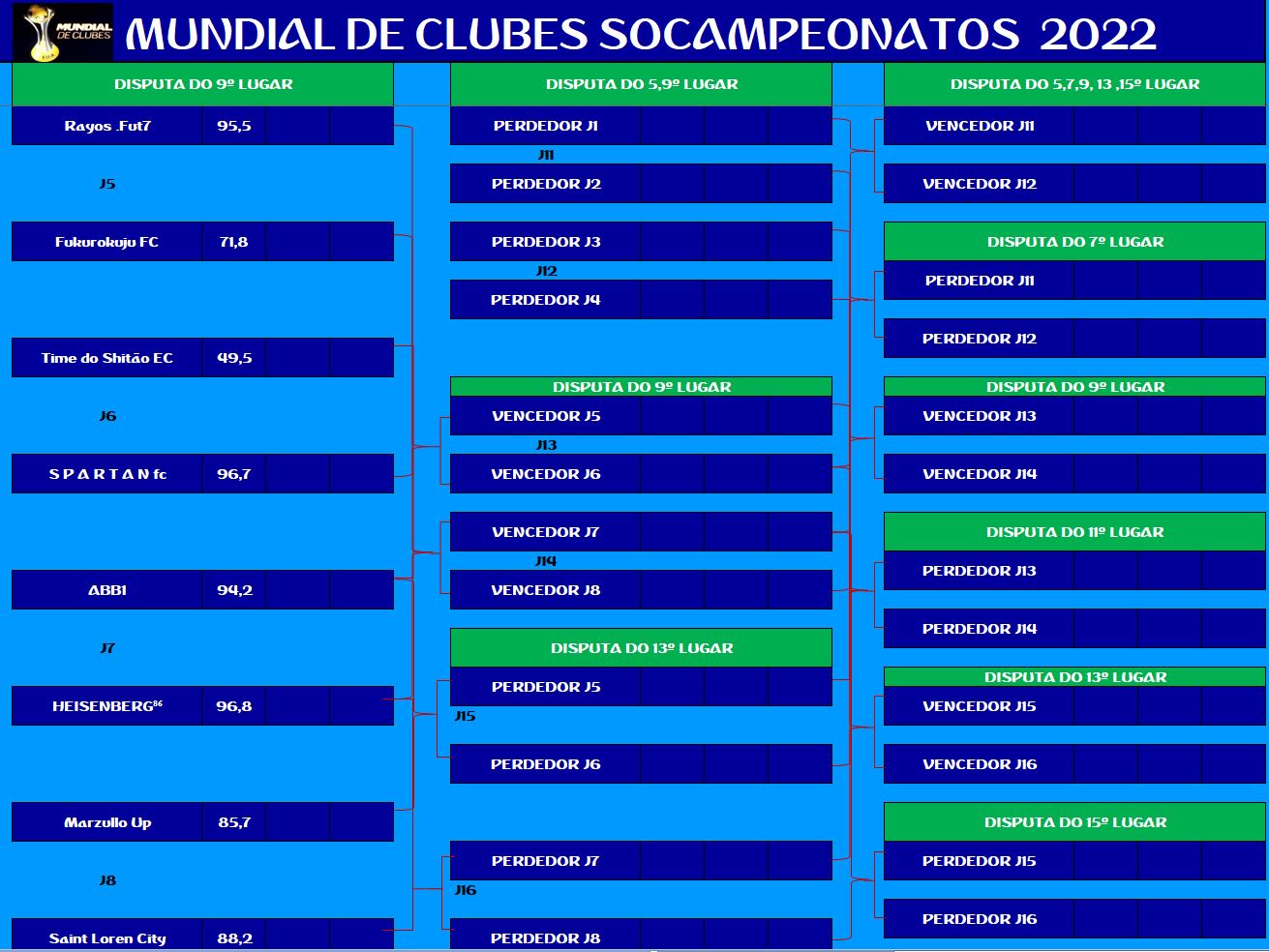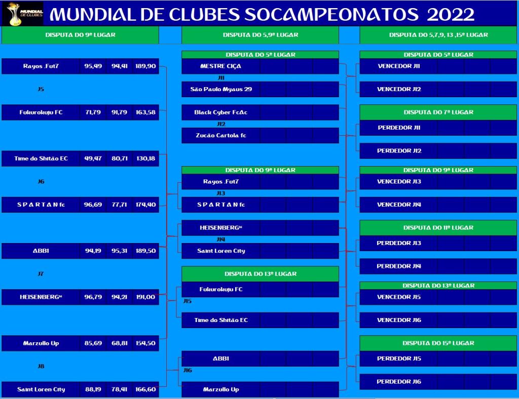 COPA DO MUNDO SOCAMPEONATOS 4 – FINAL, DISPUTA DO 3º,5º,7º LUGAR Publicado em 28/10/2022 por socampeonatos