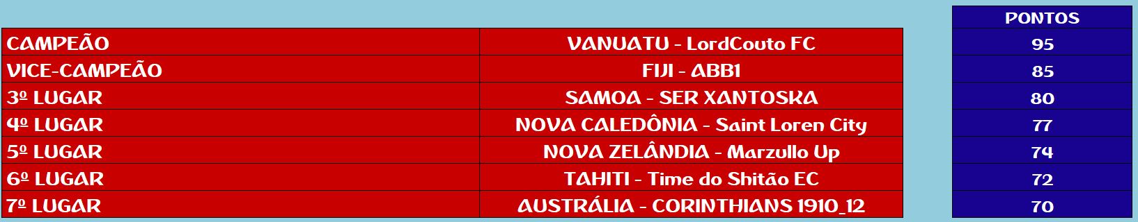 COPA DA OCEANIA – FINAL e DISPUTA DO 3º LUGAR – VOLTA Publicado em 04/10/2022 por socampeonatos Compartilhe isso: Clique para compartilhar no X(abre em nova janela) 18+ Clique para compartilhar no Facebook(abre em nova janela) Facebook Clique para compartilhar no WhatsApp(abre em nova janela) WhatsApp Curtir Carregando... Relacionado