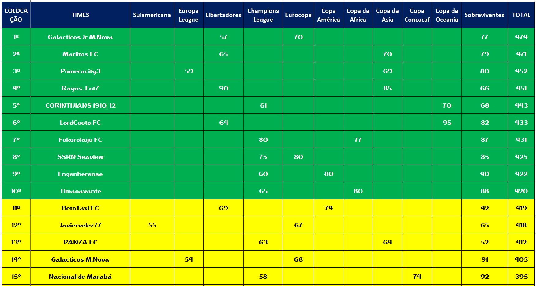 CHAMPIONS LEAGUE SOCAMPEONATOS CLASSIFICAÇÃO