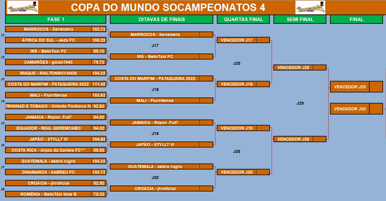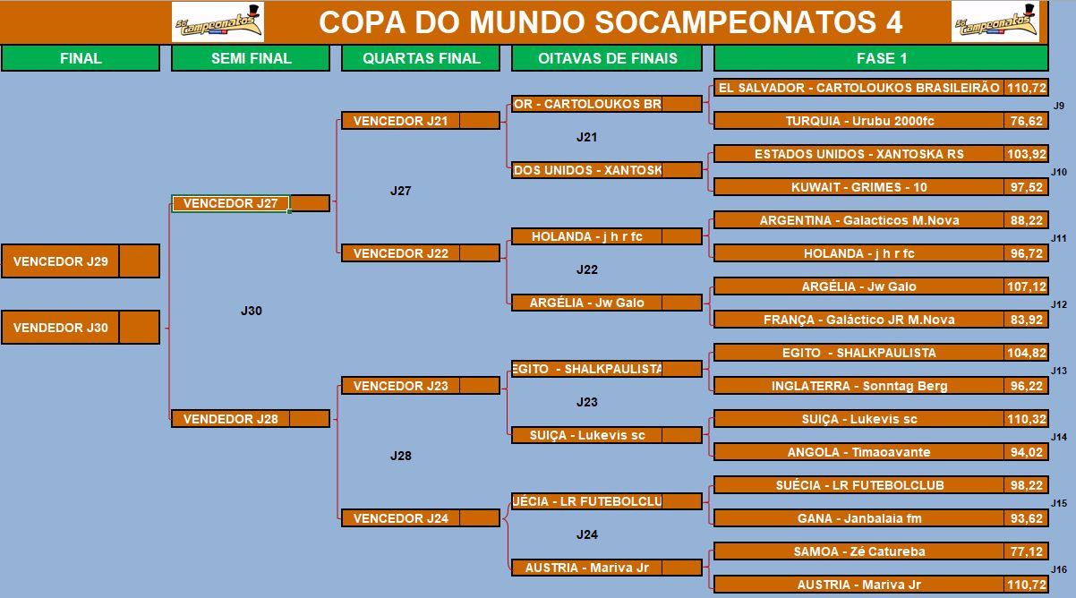 COPA DO MUNDO SOCAMPEONATOS 4 – MATA MATA FASE 1