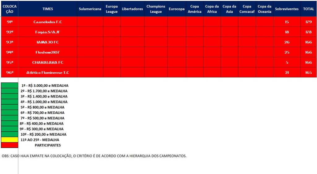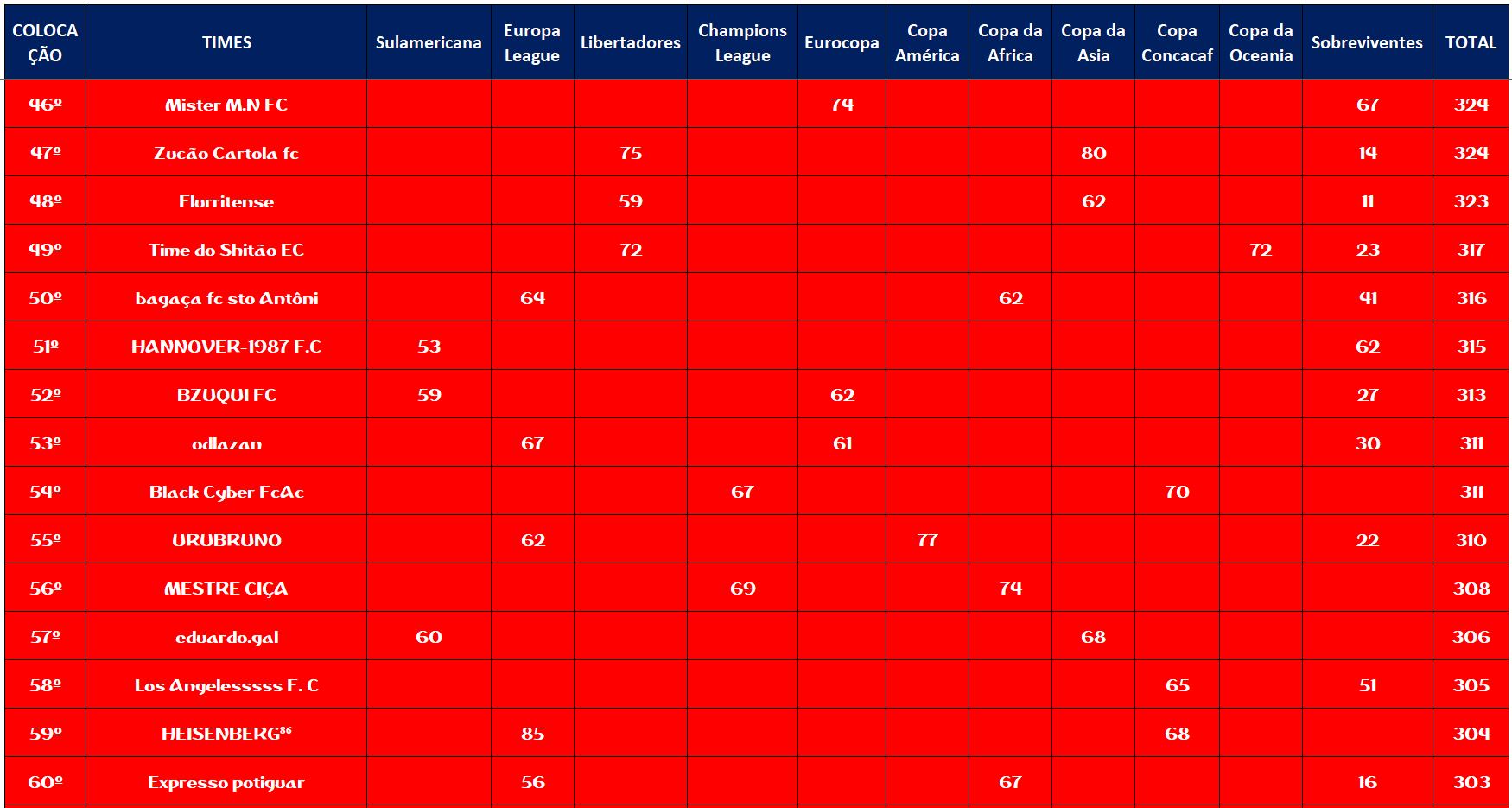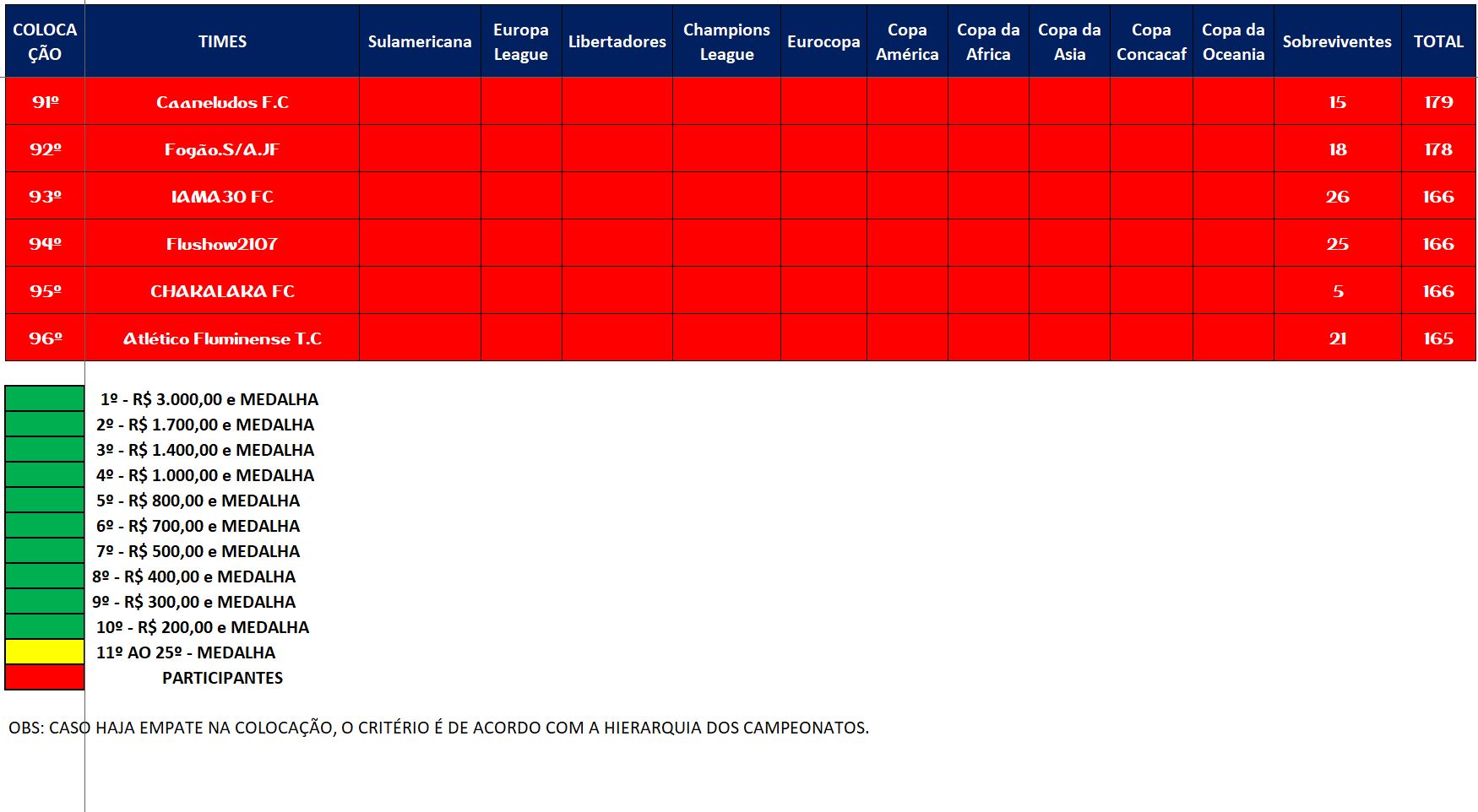 CLASSIFICAÇÃO – O MAIOR CAMPEONATOS DA HISTÓRIA