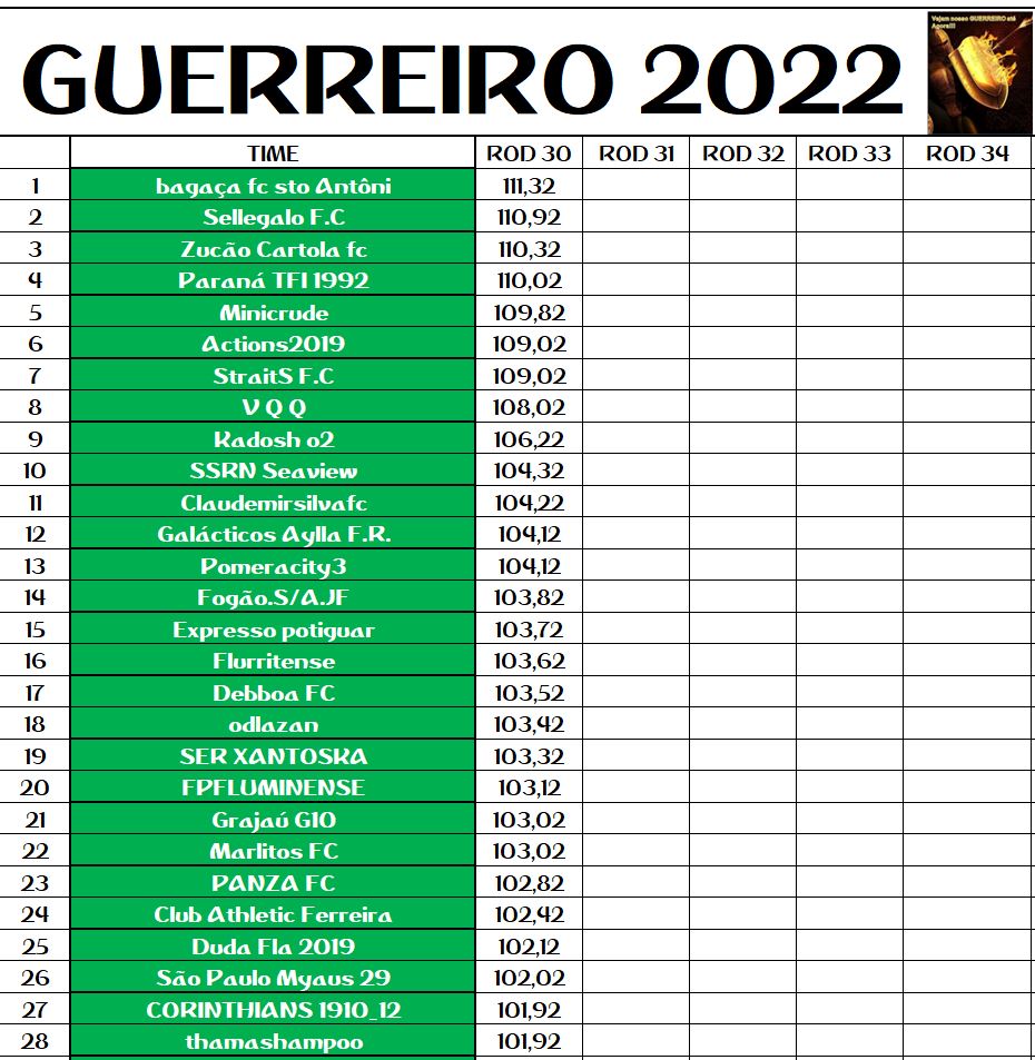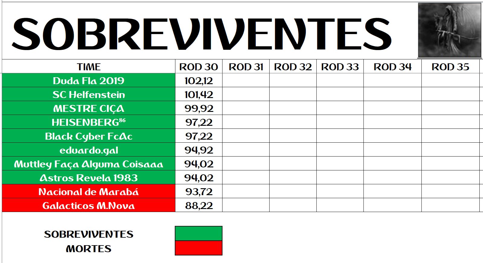 SOBREVIVENTES DA TEMPORADA – RODADA 30