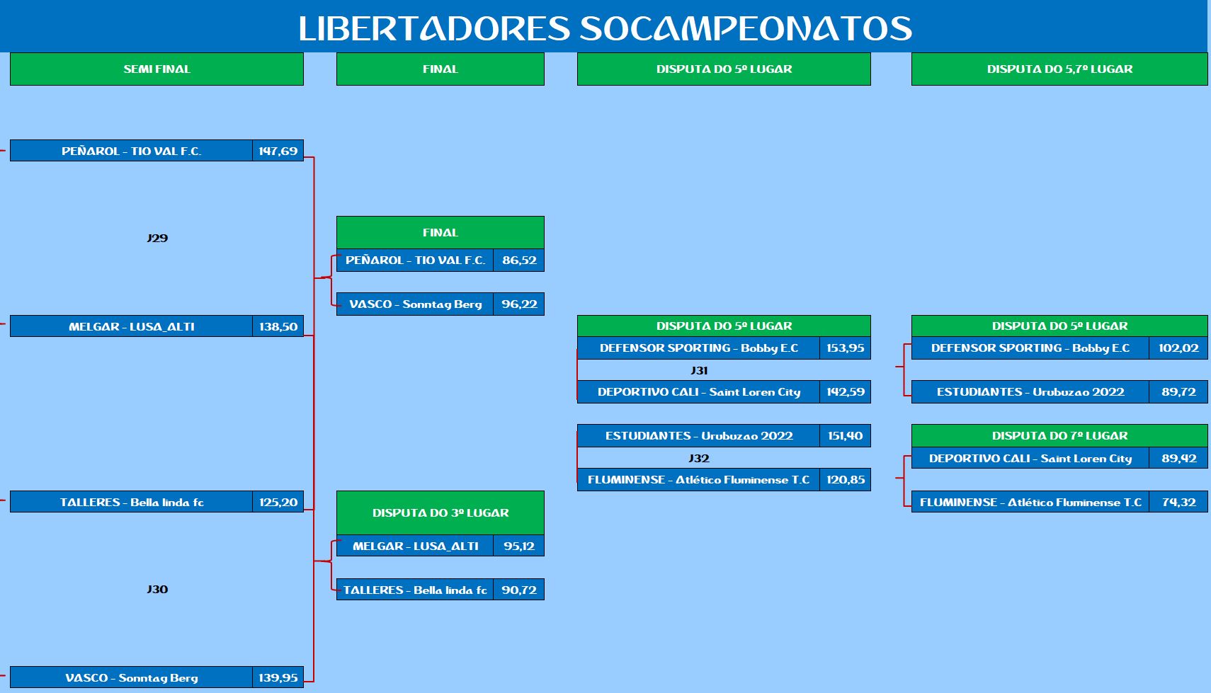 LIBERTADORES SOCAMPEONATOS- FINAL, 3º,5º,7º LUGAR