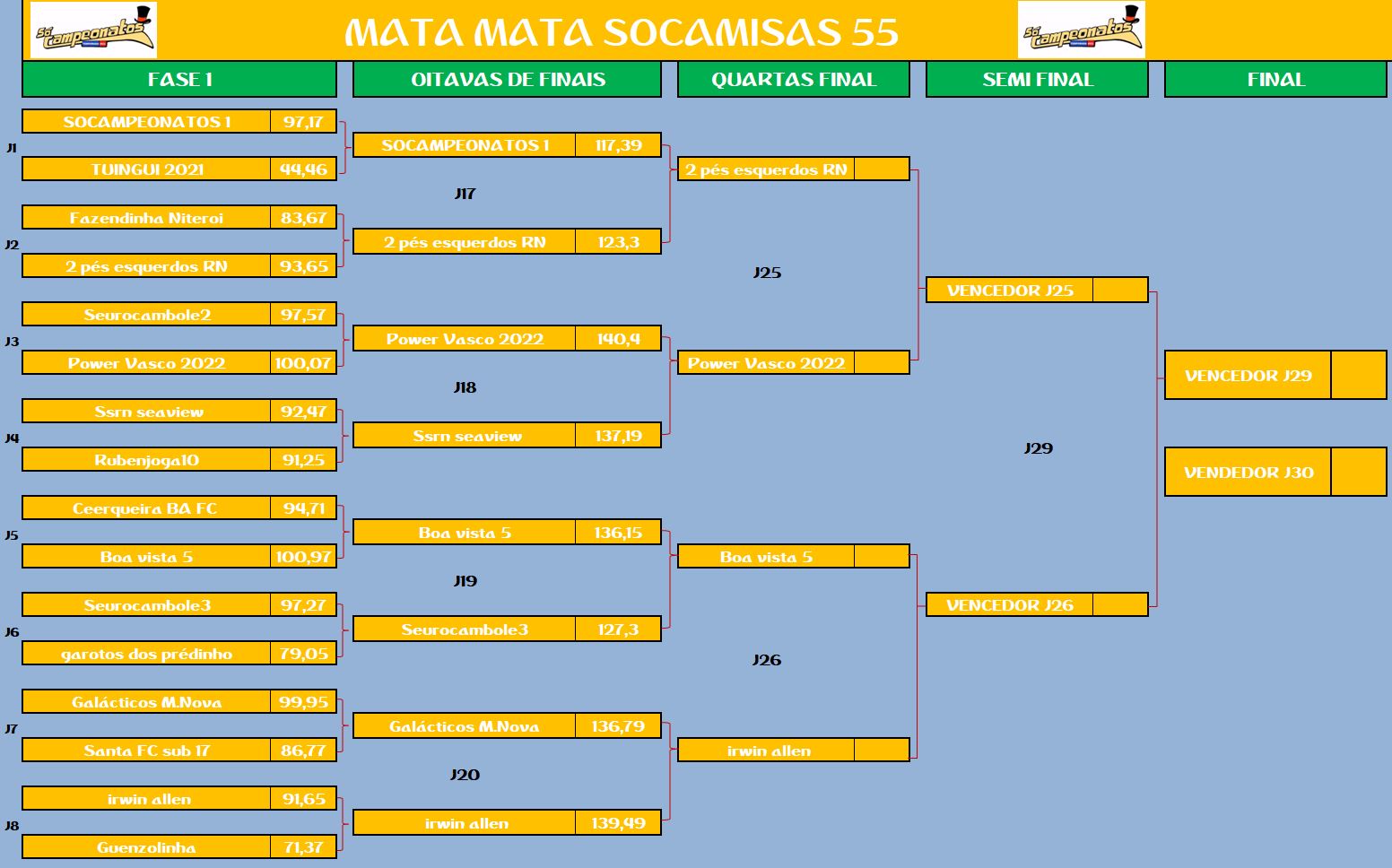 CHAMPIONS LEAGUE SOCAMPEONATOS – FINAL e DISPUTA DO 3º,5º,7º LUGAR Publicado em 04/10/2022 por socampeonatos