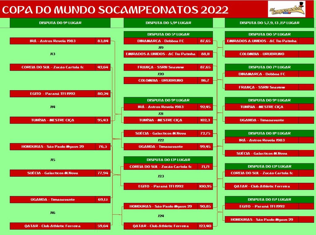 COPA DO MUNDO – FINAL, DISPUTA DO 3º,5º,7º,9º,11º,13º,15º LUGAR Publicado em 15/11/2022 por socampeonatos