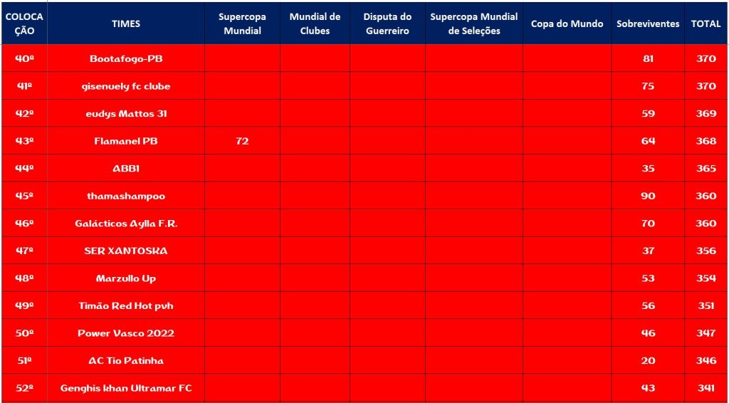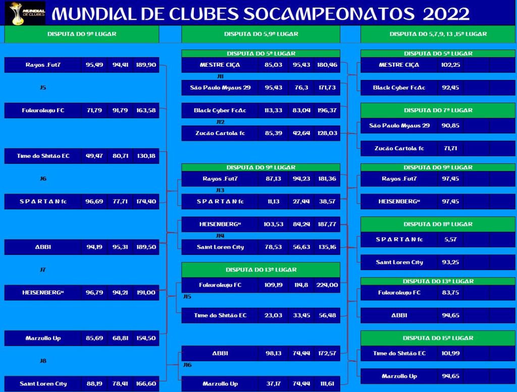 MUNDIAL DE CLUBES – SEMI FINAL e DISPUTA DO 3º,5º,7º,9º,11º,13º,15º LUGAR – VOLTA Publicado em 15/11/2022 por socampeonatos