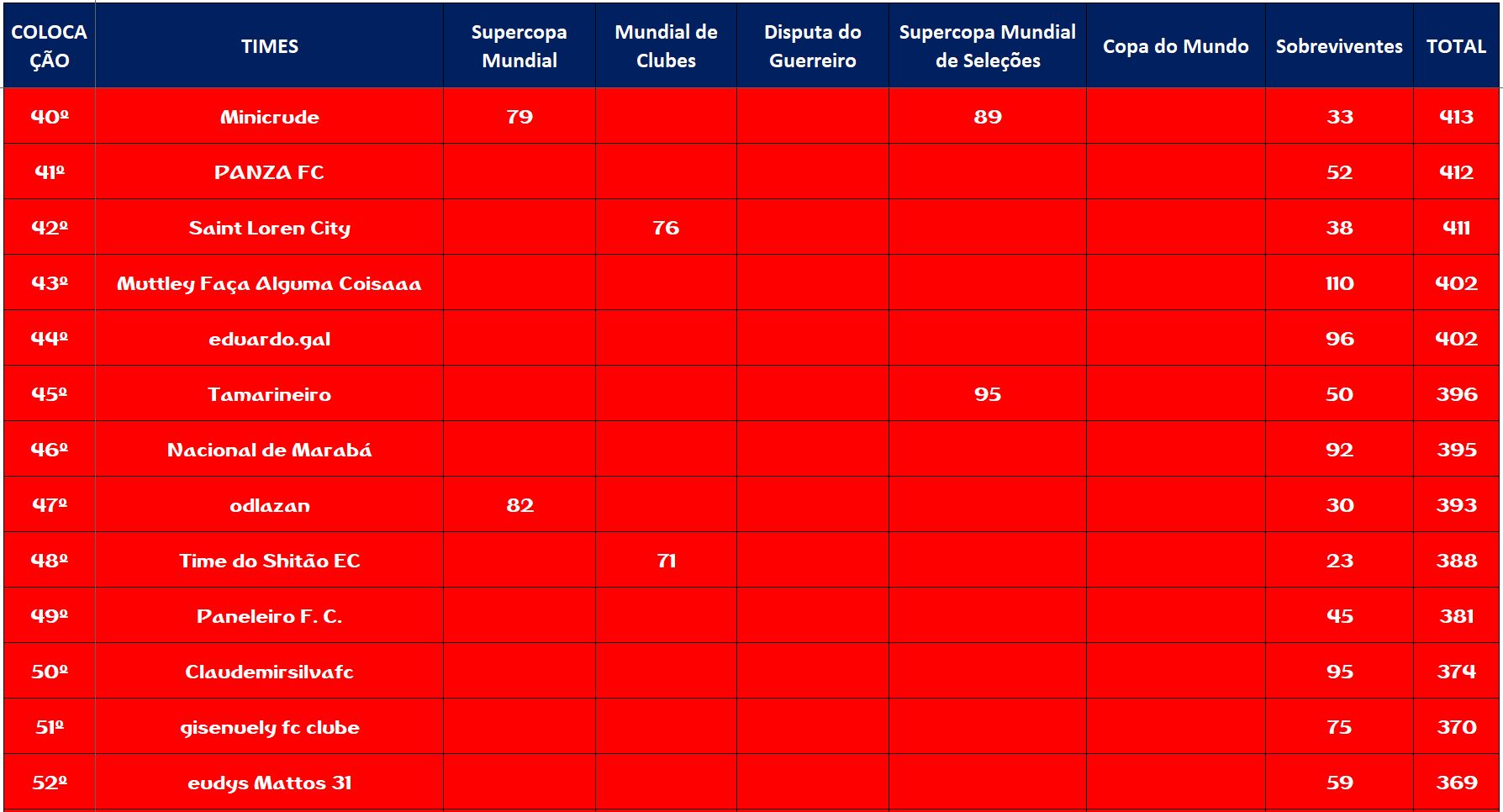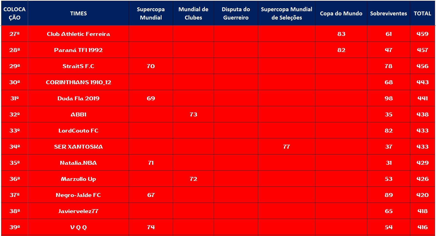 SUPERCOPA MUNDIAL DE SELEÇÕES – SEMI FINAL, DISPUTA DO 5º,9º,13º LUGAR Publicado em 11/11/2022 por socampeonatos
