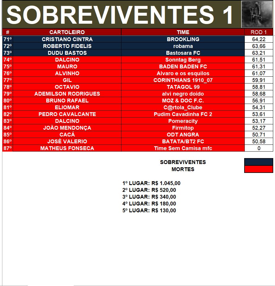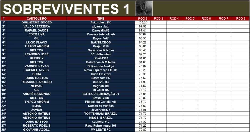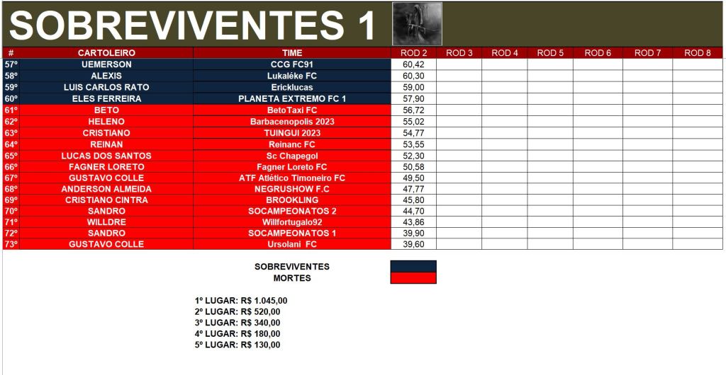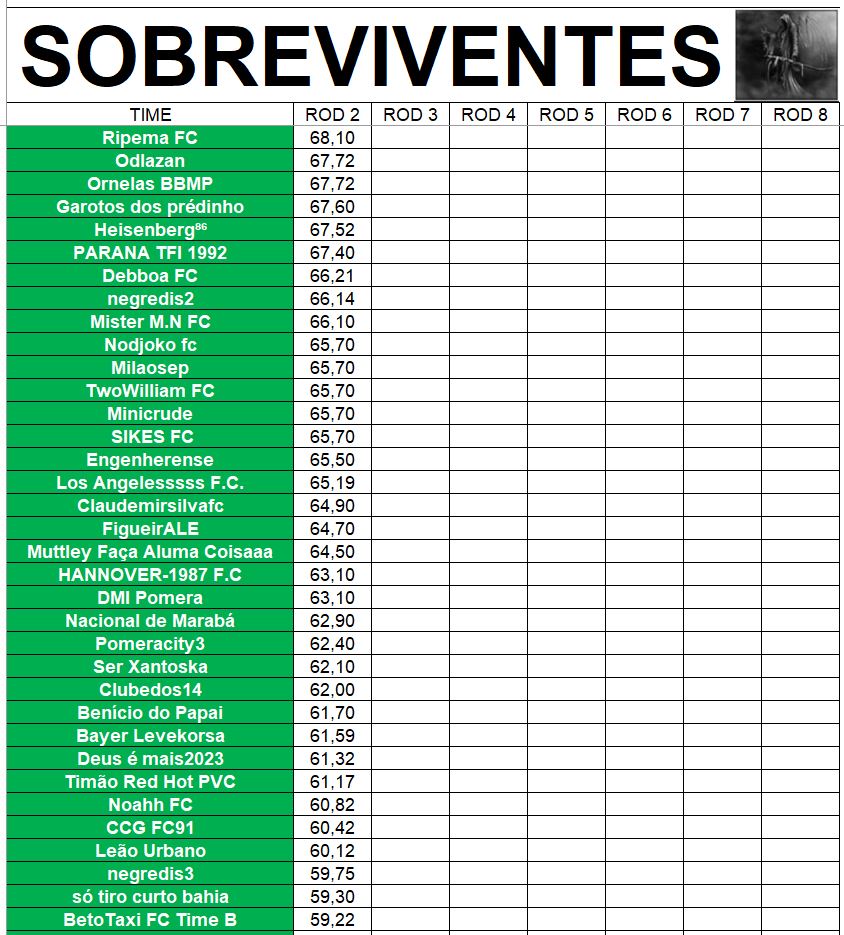SOBREVIVENTES DA TEMPORADA – RODADA 2