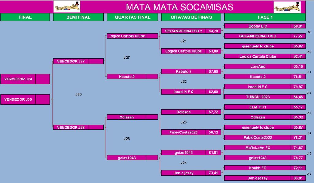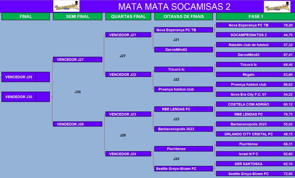 FASES: FASE 1,FASE 2, FASE 3, OITAVAS DE FINAIS, QUARTAS DE FINAIS, SEMI FINAL E FINAL;