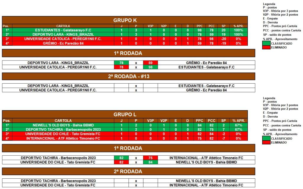 LIBERTADORES SOCAMPEONATOS – RODADA 2