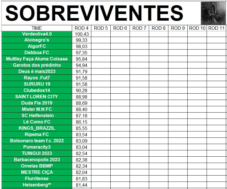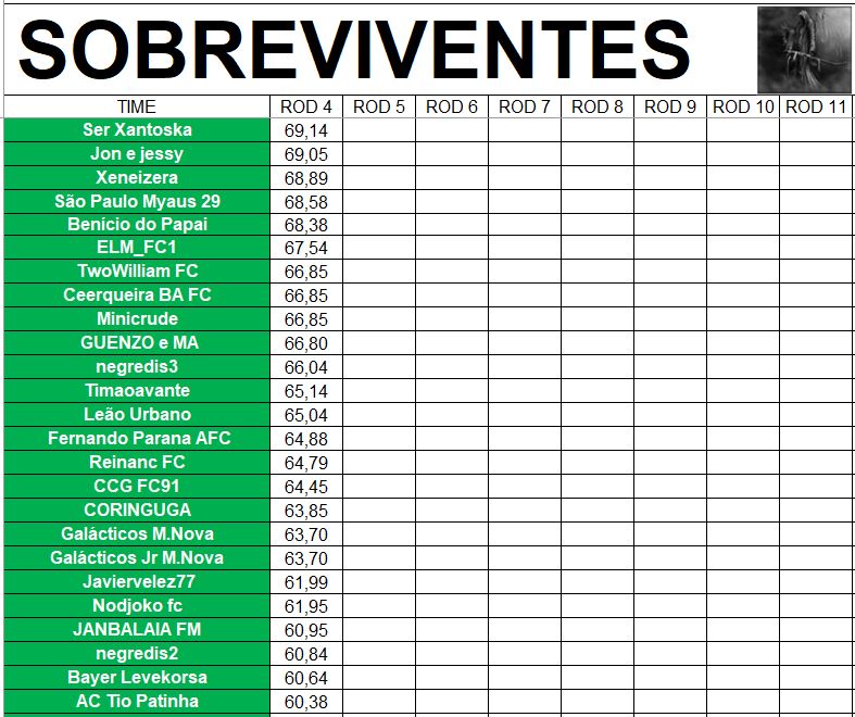SOBREVIVENTES DA TEMPORADA – RODADA 4