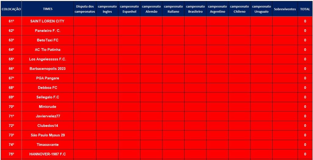 CLASSIFICAÇÃO – O MAIOR CAMPEONATOS DA HISTÓRIA