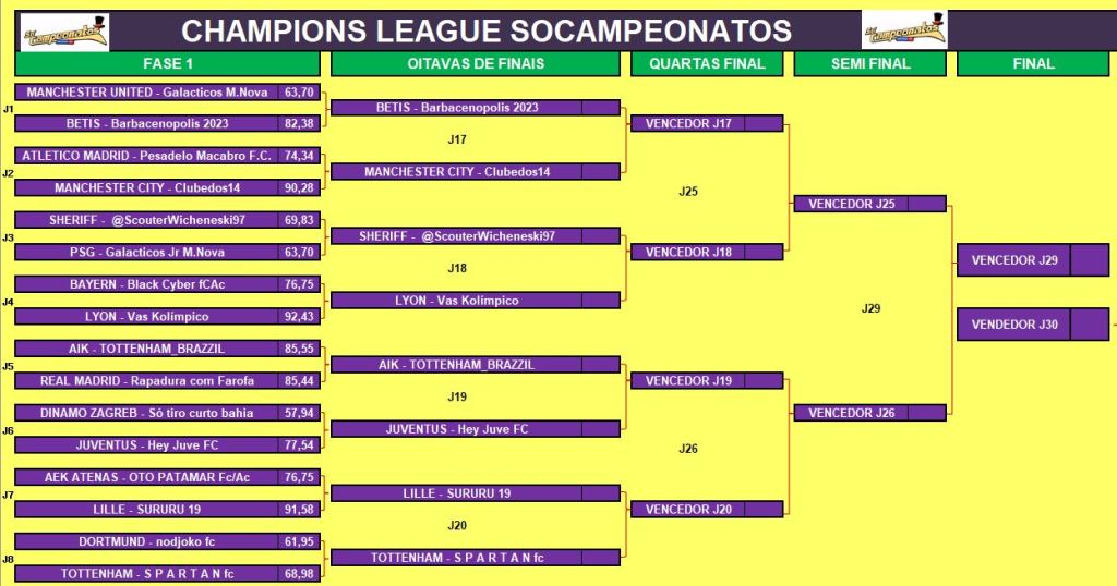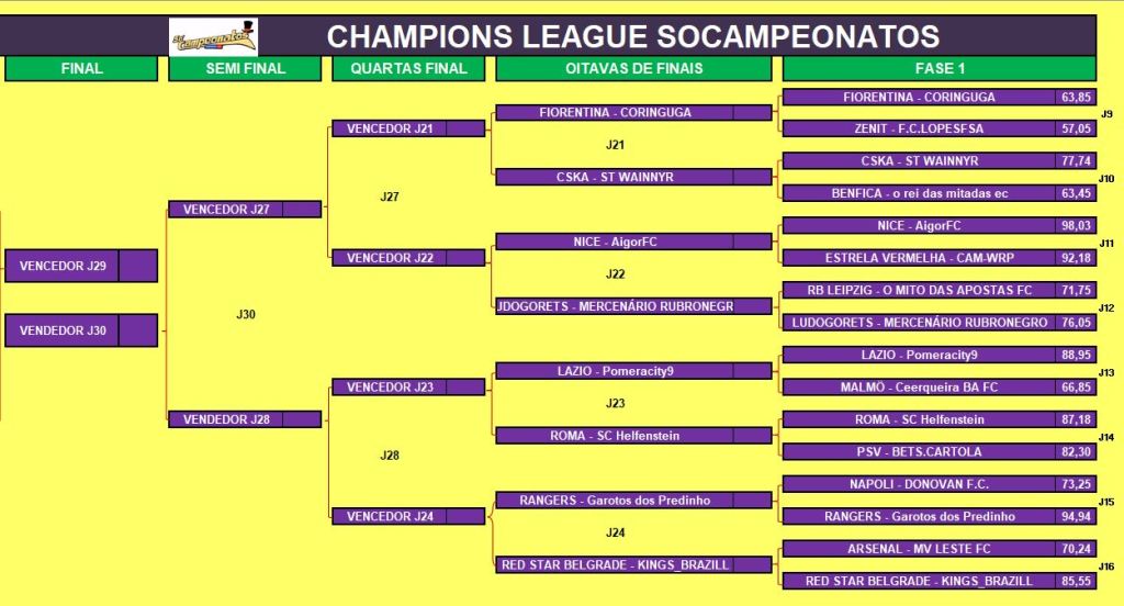 CHAMPIONS LEAGUE SOCAMPEONATOS TABELA