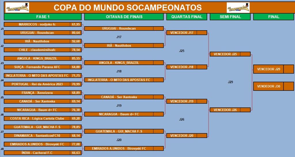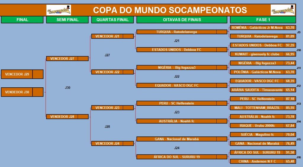 COPA DO MUNDO SOCAMPEONATOS – MATA MATA – FASE 1