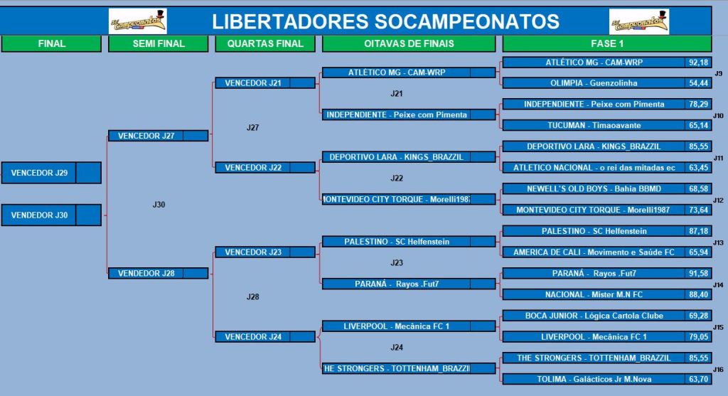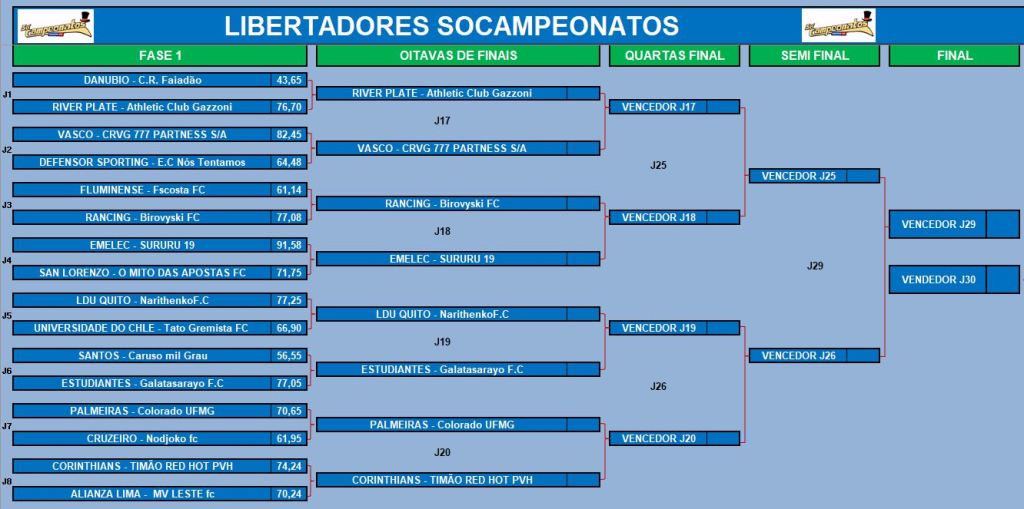 LIBERTADORES SOCAMPEONATOS – MATA MATA – FASE 1