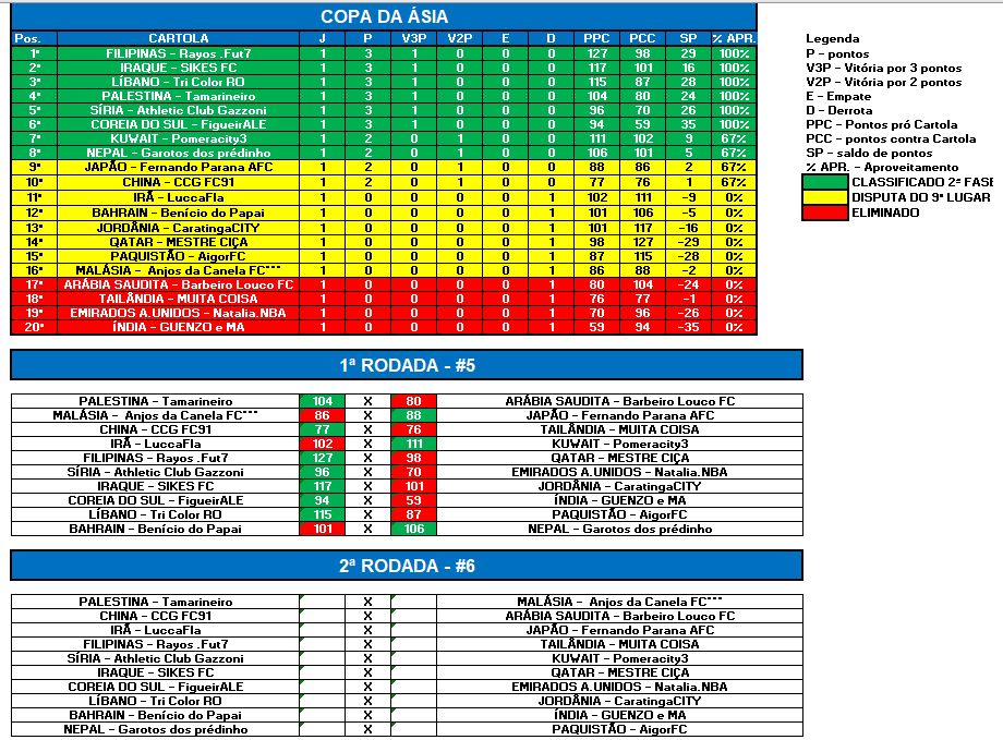 COPA DA ÁSIA – RODADA 1