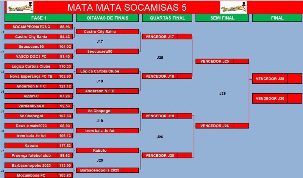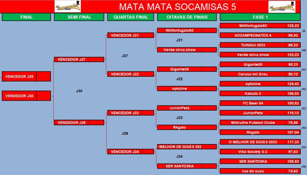 CHAMPIONS LEAGUE SOCAMPEONATOS – OITAVAS DE FINAIS