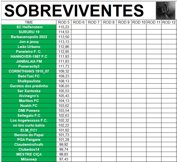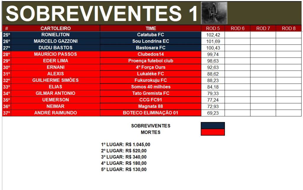 SOBREVIVENTES DA TEMPORADA – RODADA 5