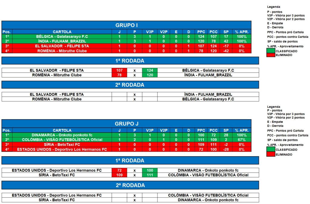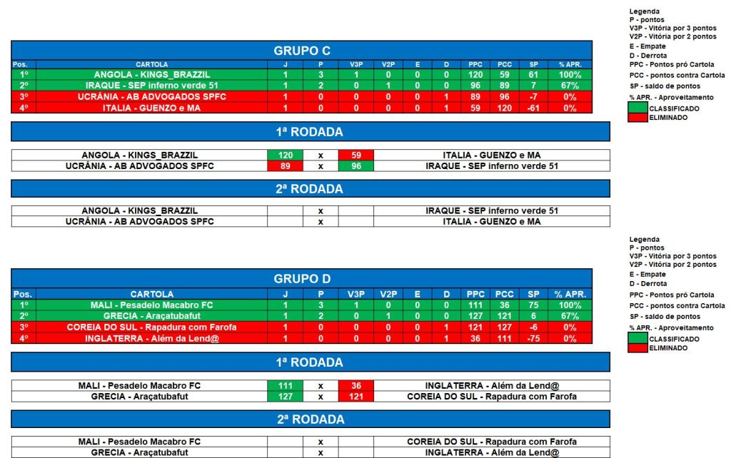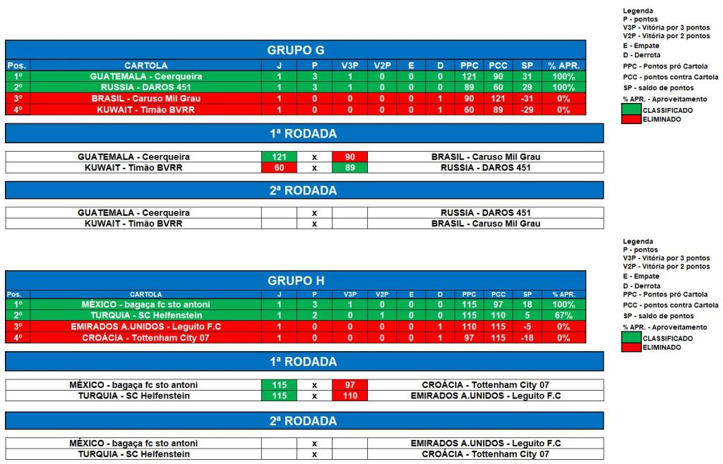 COPA DO MUNDO SOCAMPEONATOS 2 – FASE 1 – RODADA 1