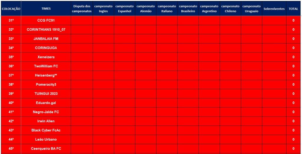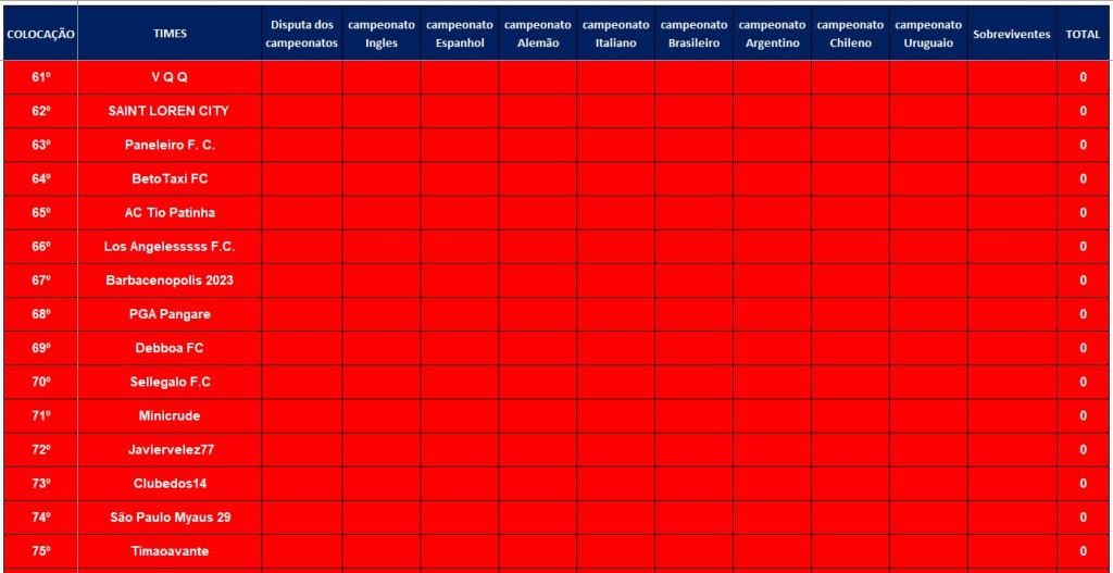 CLASSIFICAÇÃO – O MAIOR CAMPEONATOS DA HISTÓRIA