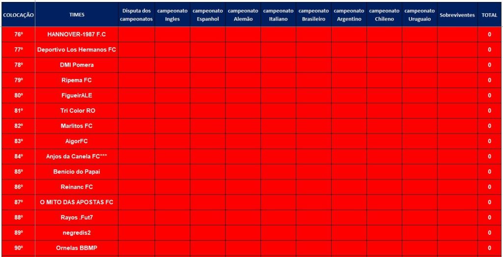 TABELA – O MAIOR CAMPEONATOS DA HISTÓRIA