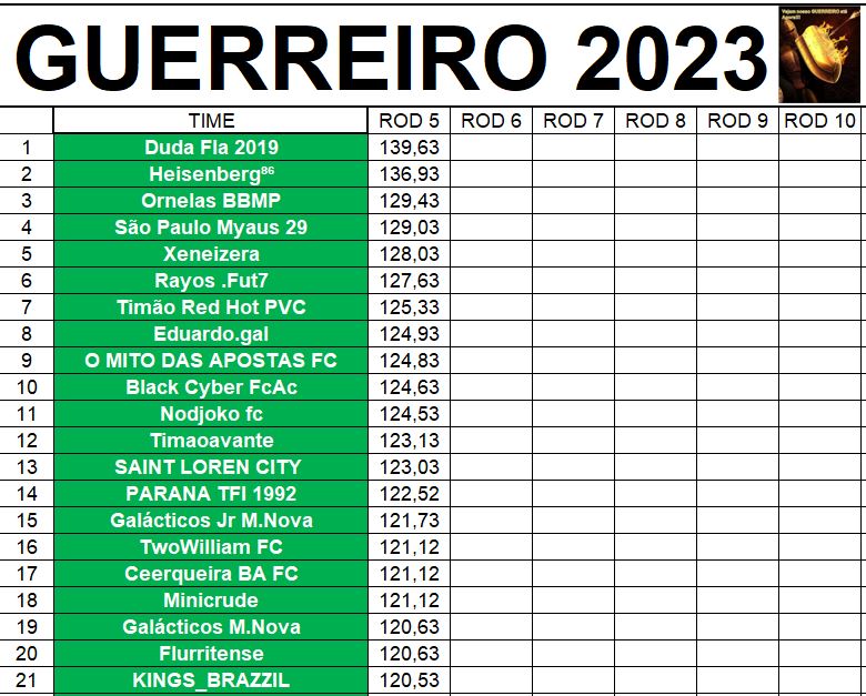 DISPUTA DO GUERREIRO – RODADA 5