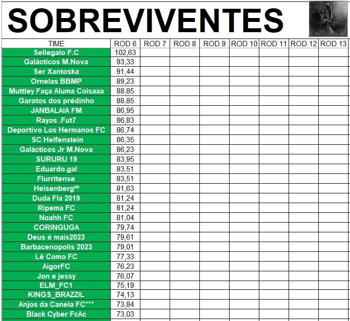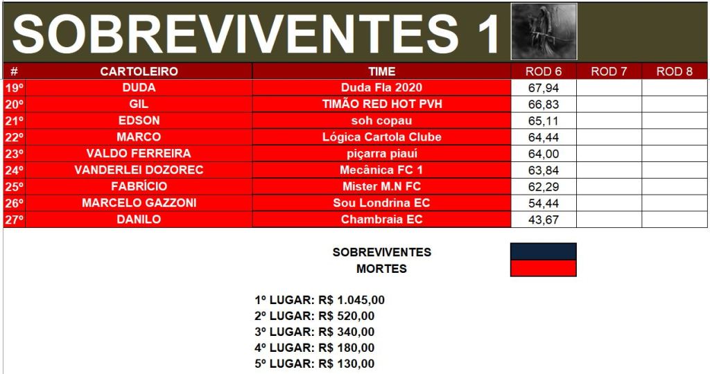 SOBREVIVENTES DA TEMPORADA – RODADA 6