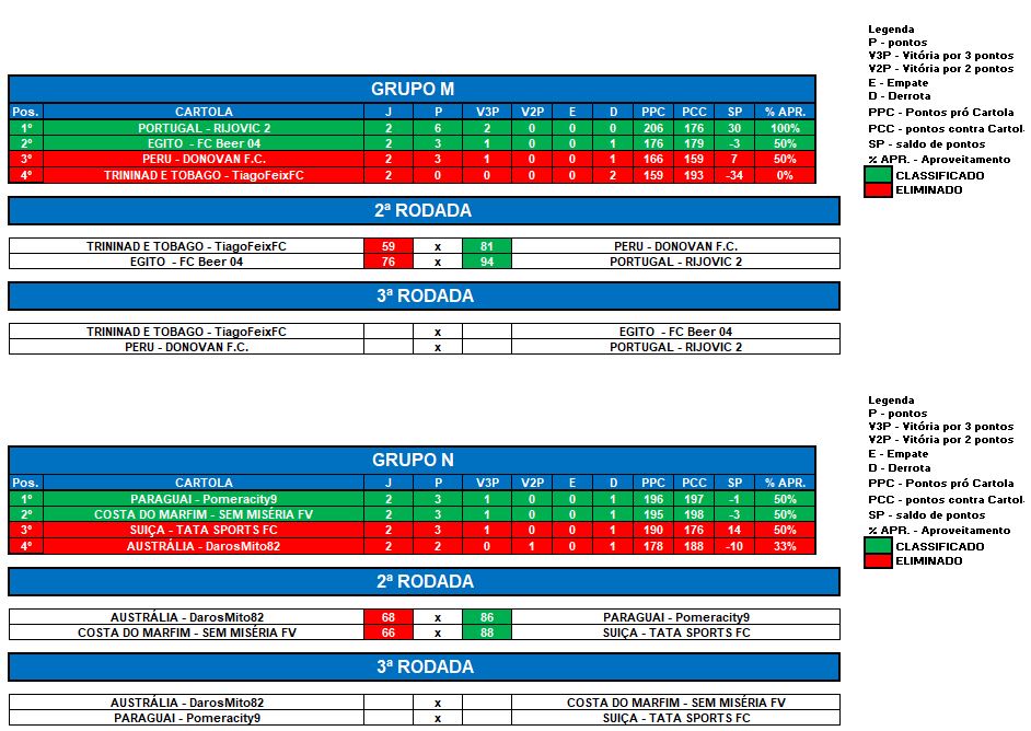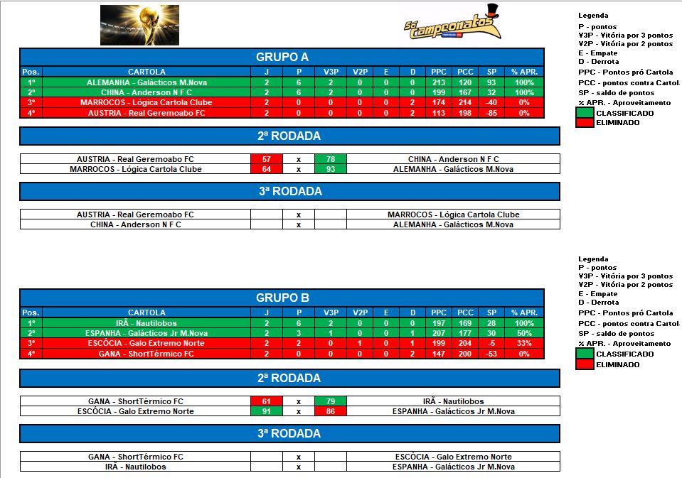 COPA DO MUNDO SOCAMPEONATOS 2 – FASE 1 – RODADA 2
