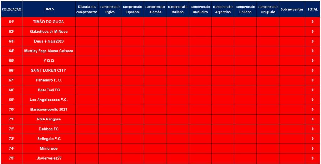 CLASSIFICAÇÃO – O MAIOR CAMPEONATOS DA HISTÓRIA