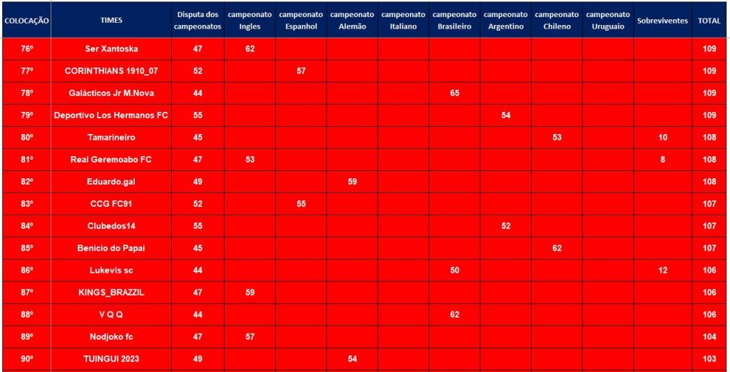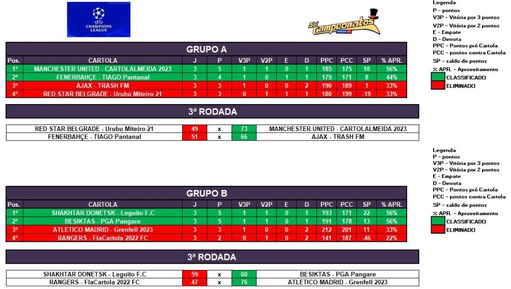 CHAMPIONS LEAGUE SOCAMPEONATOS 2 – FASE DE GRUPOS – RODADA 3 Publicado em 23/06/2023 por socampeonatos