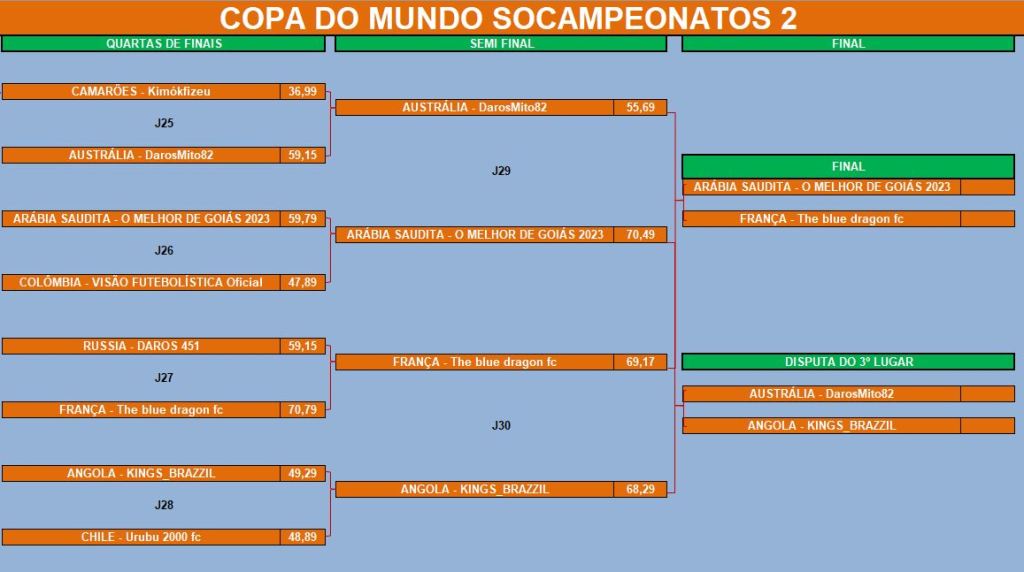 COPA DO MUNDO SOCAMPEONATOS 2 – SEMI FINAL e DISPUTA do 5º LUGAR Publicado em 23/06/2023 por socampeonatos
